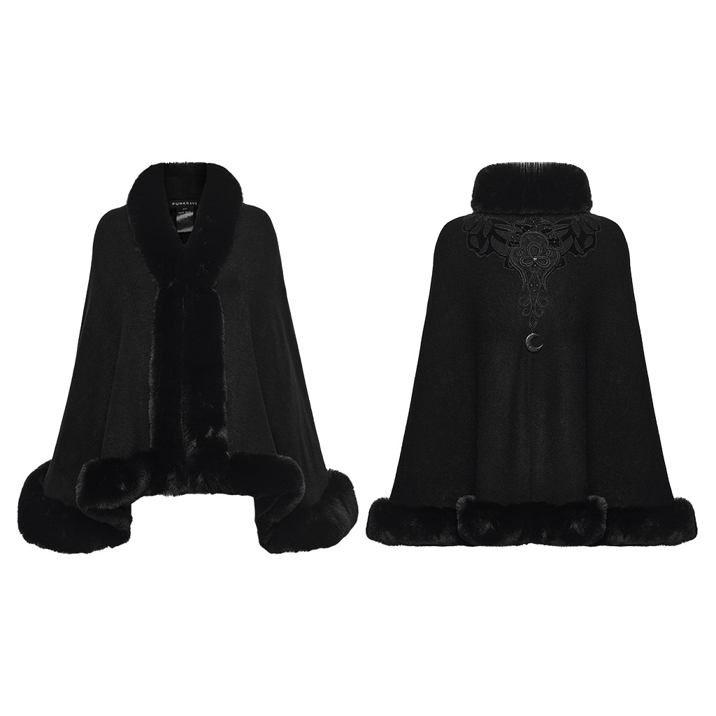 Introducing the Gothic Coat Vintage Fur Trimmed Embroidered Cape Cloak, where timeless elegance meets dark allure. This striking piece embodies the essence of gothic fashion with its luxurious fur trims and intricate embroidery, creating a statement look that captivates. Ideal for those who embrace the mysterious and the majestic, this cloak is your ultimate choice for making an unforgettable entrance.
