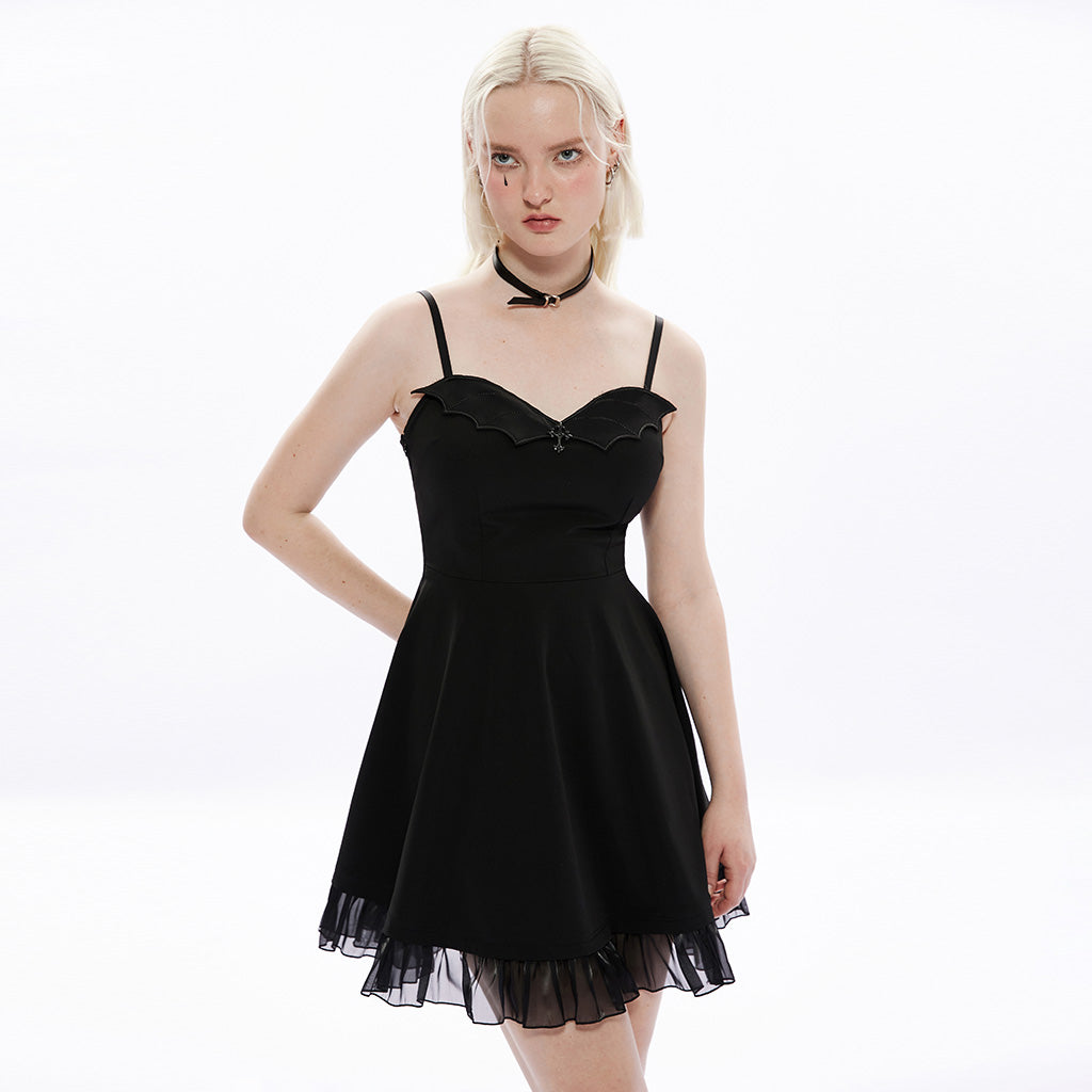 Introducing the Gothic Black Bat Decor Layered Hem Punk Dress, a striking blend of gothic elegance and punk style. This dress is designed for those who embrace individuality and a playful yet edgy aesthetic. With its unique bat detailing and layered hem, this piece is perfect for making a dramatic statement wherever you go.