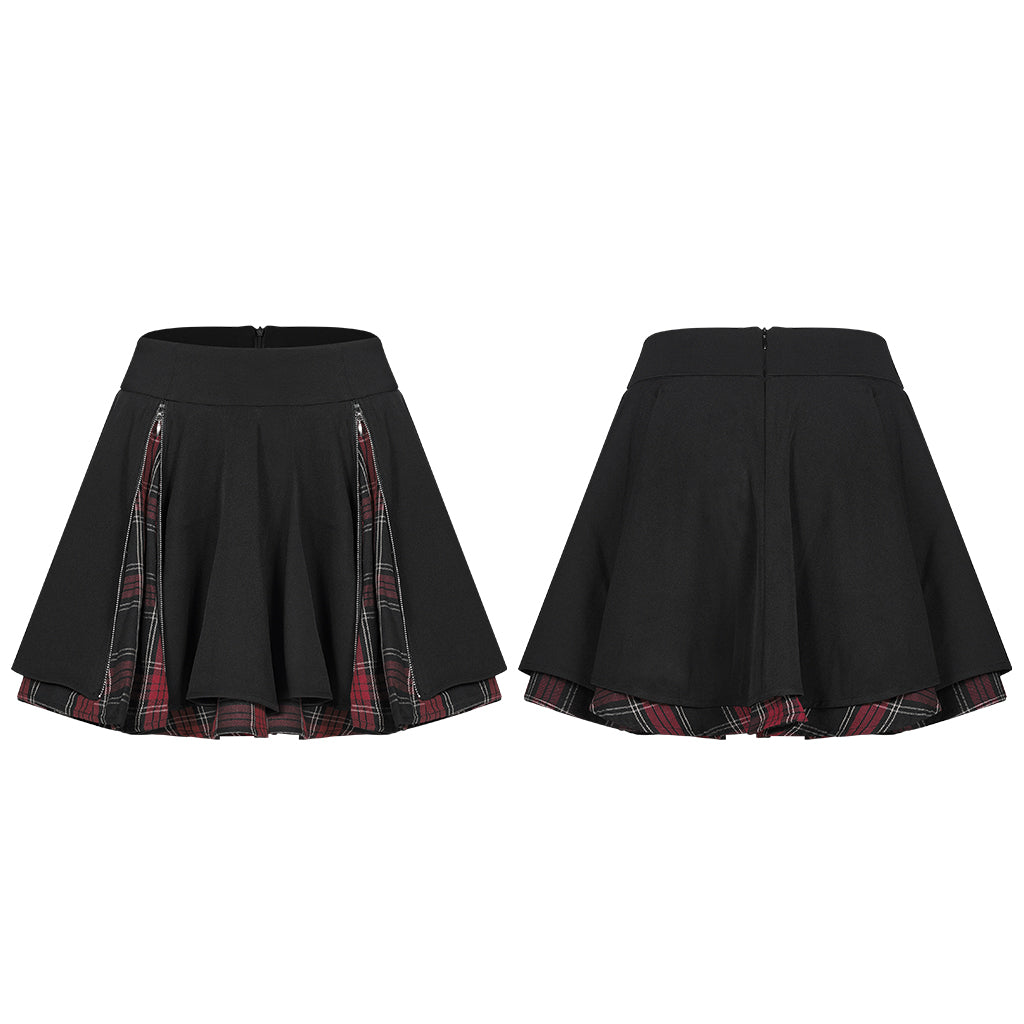 Introducing the Gothic Black Punk Skirt with Plaid Trim and Zipper Accent Design, an embodiment of edgy punk style blended with a touch of gothic elegance. Perfect for those who want to make a statement, this skirt showcases a bold plaid contrast that adds a rebellious flair to your outfit. Whether you're heading to a concert or simply redefining your wardrobe, this is the punk skirt you need for an unforgettable look.