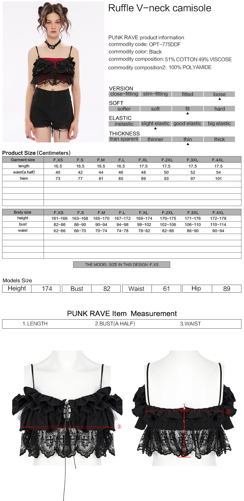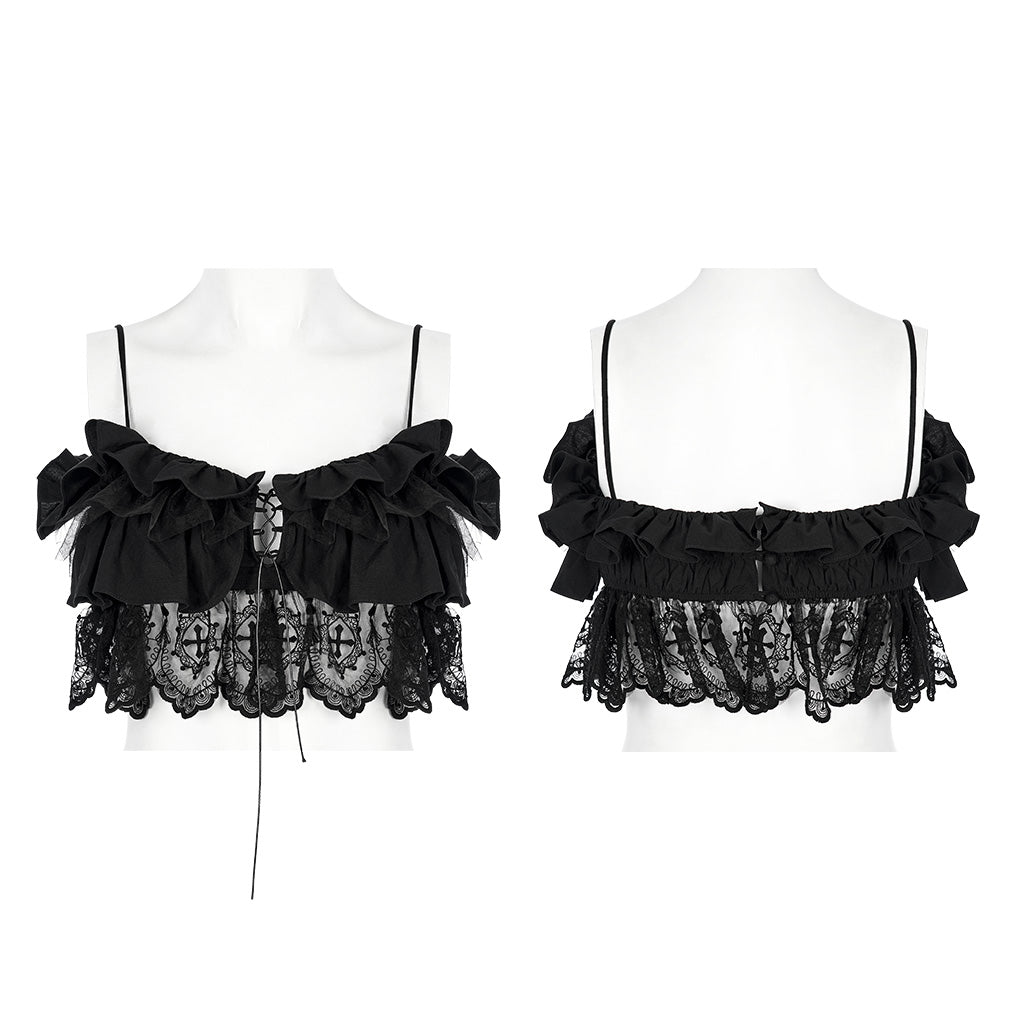 Embrace the edge of punk fashion with this daring crop top, where ruffles and lace redefine alternative style.