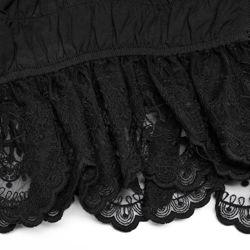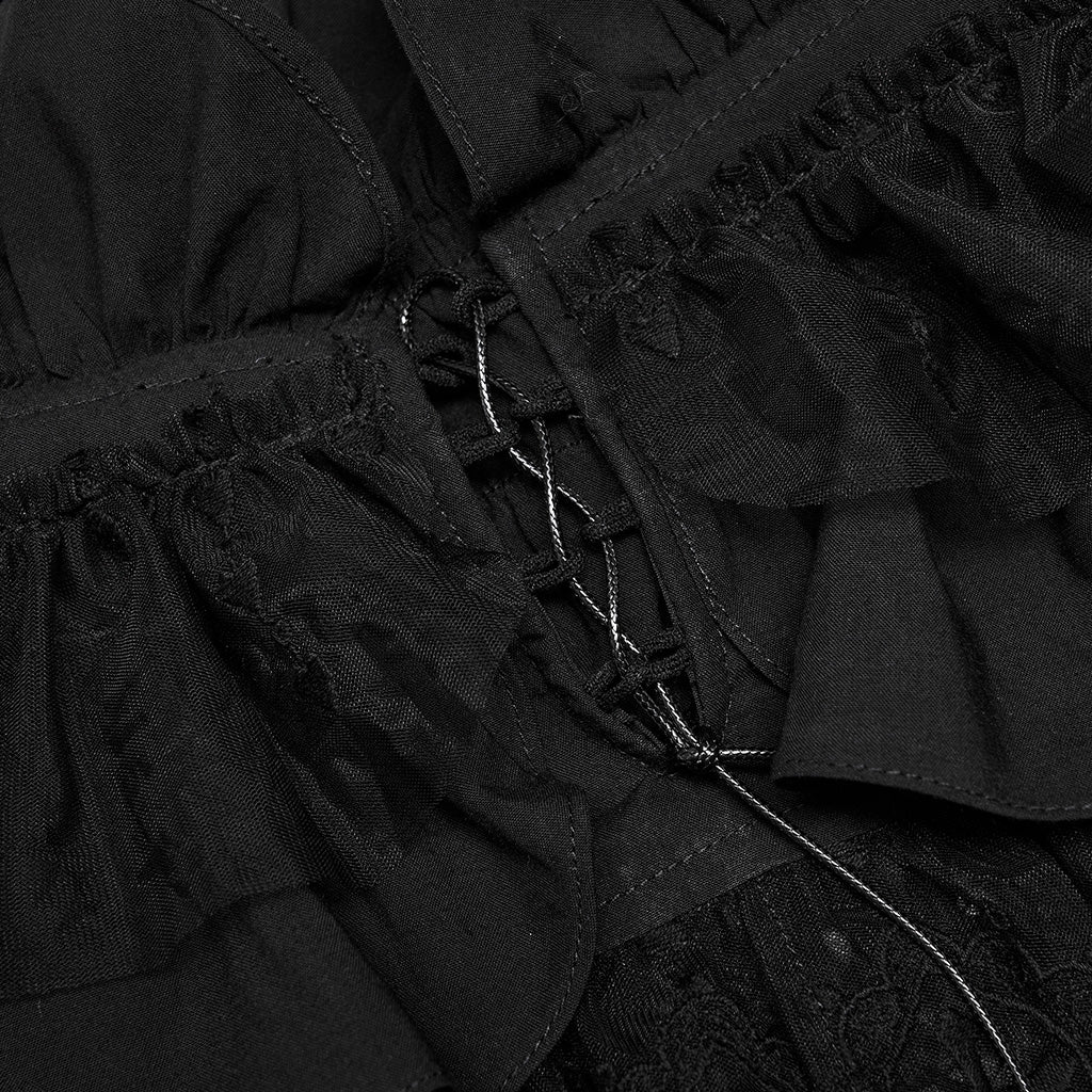 Introducing the Edgy Ruffled Lace Crop Top, the ultimate Punk Shirt for making a bold fashion statement. This top combines delicate lace and ruffled textures, creating a captivating intersection of elegance and rebellion. Perfect for those who dare to embrace a daring punk aesthetic, this crop top effortlessly enhances any outfit with its unique flair.