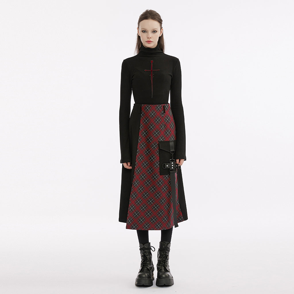 Introducing the Gothic Shirts Cross Design Flared Sleeves Plaid Accent Top, a striking blend of gothic elegance and modern flair. This top is perfect for those wanting to make a bold statement with its intricate cross embroidery and dramatic flared sleeves. Whether you're creating a head-turning ensemble or layering for effect, this piece adds an unmistakable edge to your wardrobe.