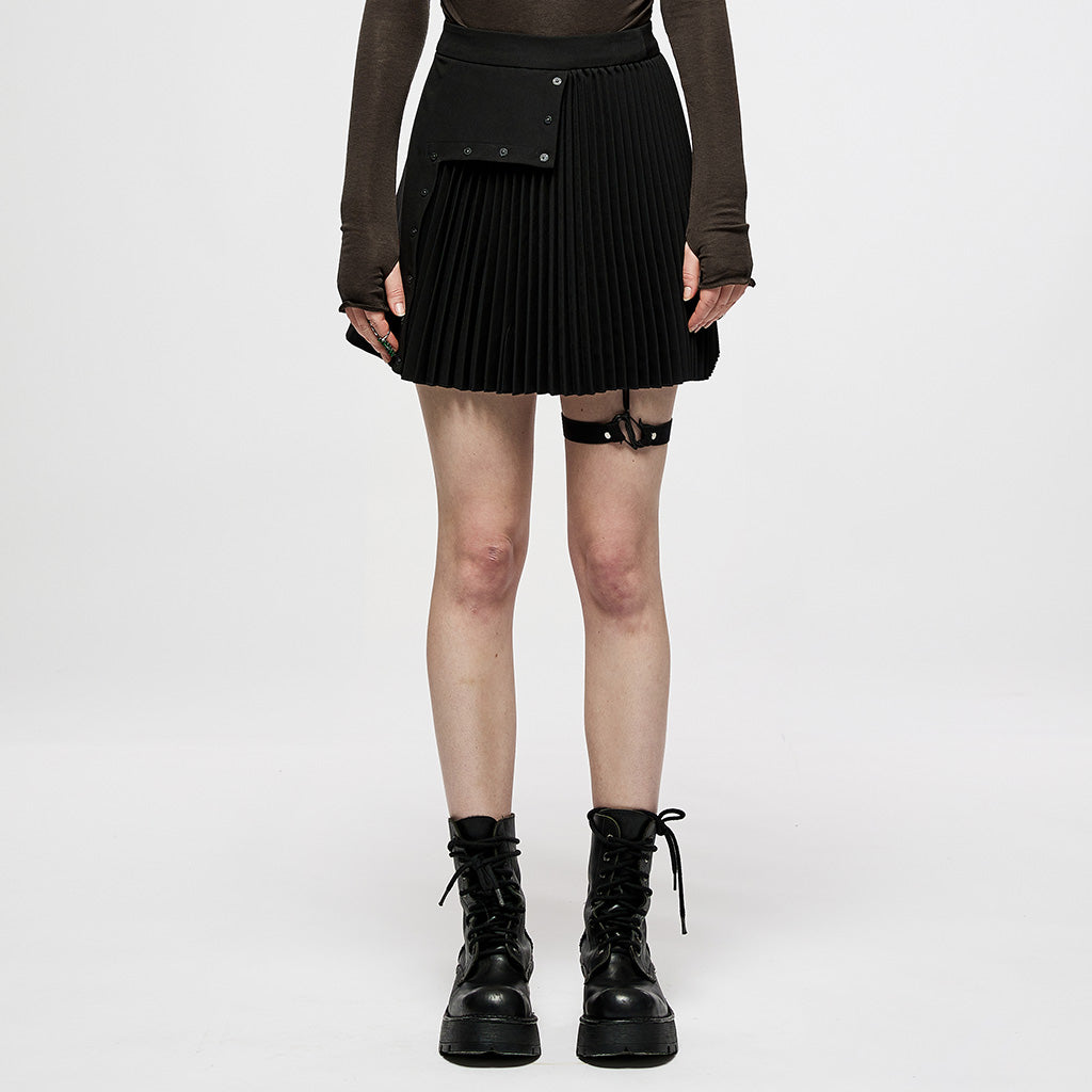 Introducing the Edgy Black Pleated Mini Punk Skirt with Snap Pockets, a striking blend of rebellious punk flair and chic sophistication. This skirt speaks to those who embrace individualism, featuring sharp pleats and functional snap pockets for a bold statement. Perfect for making waves on the street or enhancing your wardrobe with an eye-catching piece, this punk skirt is your ticket to effortless cool.