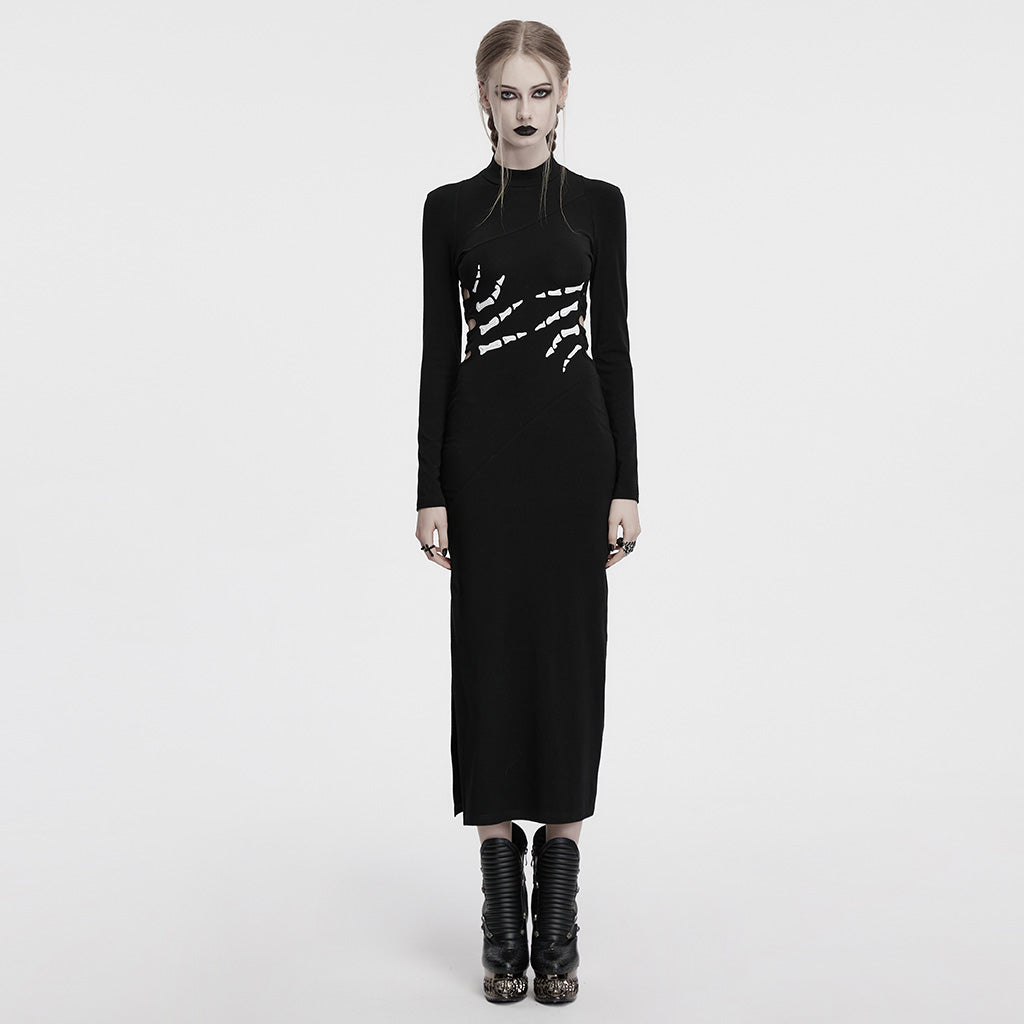 Embrace the modern rebellion with this gothic punk dress, merging skeletal artistry with the essence of alternative fashion.