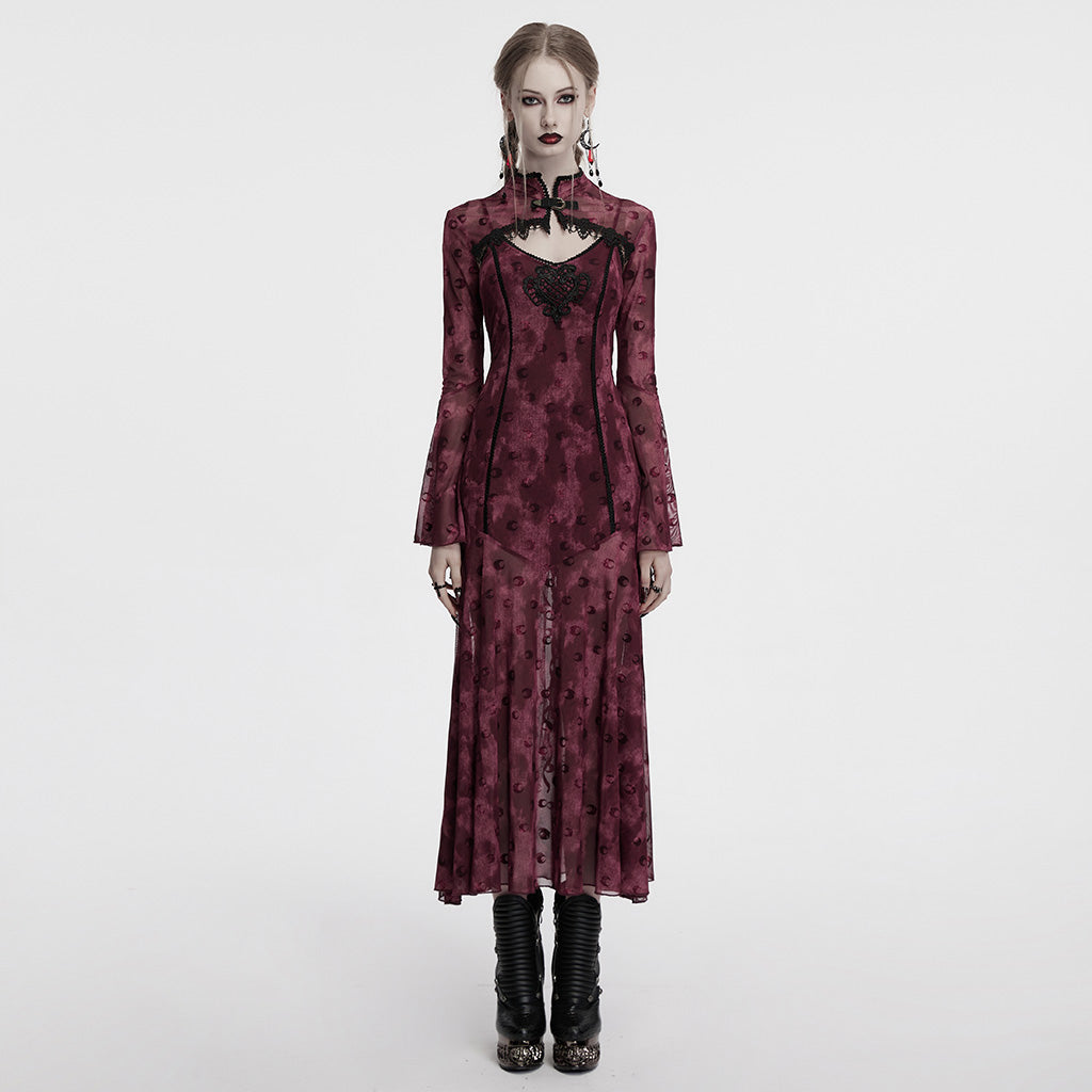 Fit and Feel: Crafted with a fitted design, this gothic dress beautifully contours to the body, offering a slight stretch for ease of movement. The rich burgundy lace provides a soft, romantic texture, staying true to its Victorian roots.