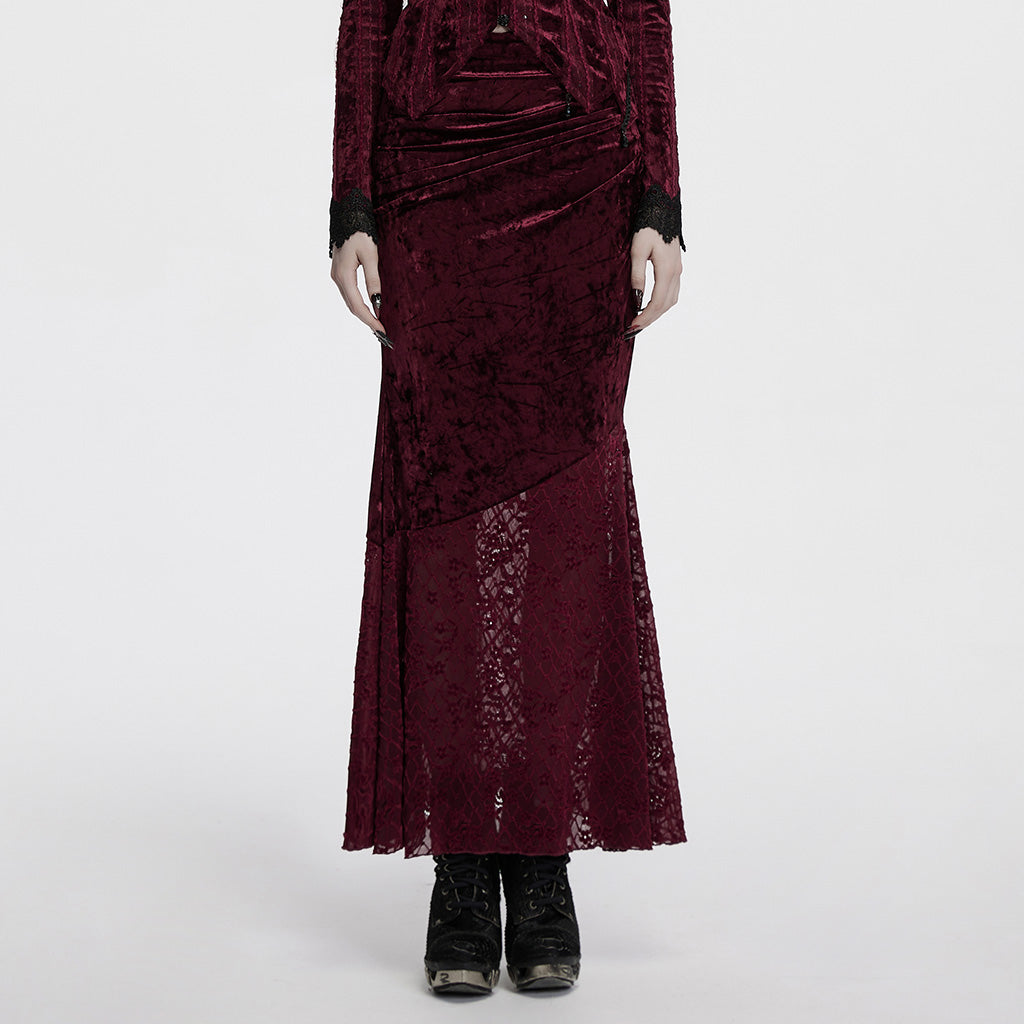 Introducing the Gothic Skirt Velvet Lace Long Maxi, a masterpiece of dark elegance perfect for any wardrobe. This skirt combines a luxurious velvet texture with intricate lace detailing to create a sophisticated and timeless look. Ideal for those who appreciate the allure of gothic fashion and want to make a striking impression.