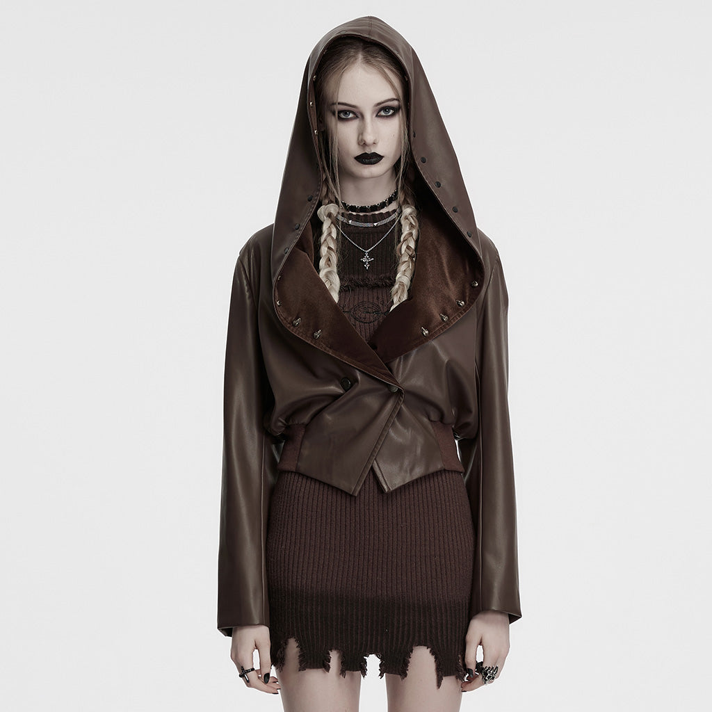 Unveil your bold, alternative style with the Hooded Faux Leather Punk Jacket with Studded Trim Unisex Style—a dynamic blend of classic punk and modern edge. Crafted for the fiercely independent, this jacket combines the timeless appeal of faux leather with striking studded details, making it a must-have piece for any rebellious wardrobe.