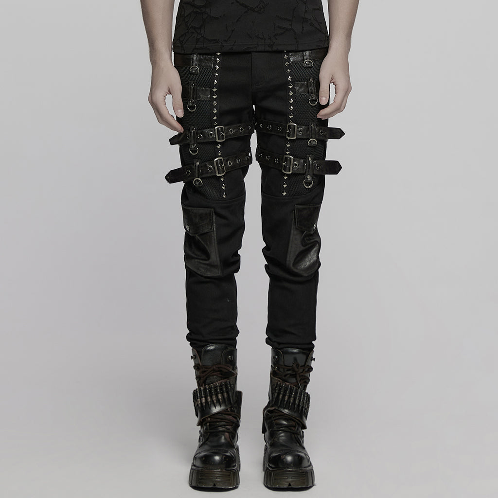 Introducing the Men's Black Buckle Strap Punk Pants with Studded Details, a daring combination of bold punk elements and urban edge. These pants are ideal for those who desire a standout look, featuring striking buckles and intricate studded details that transform any ensemble. Whether you're navigating the city streets or amping up your wardrobe, these punk pants are your ultimate statement piece.