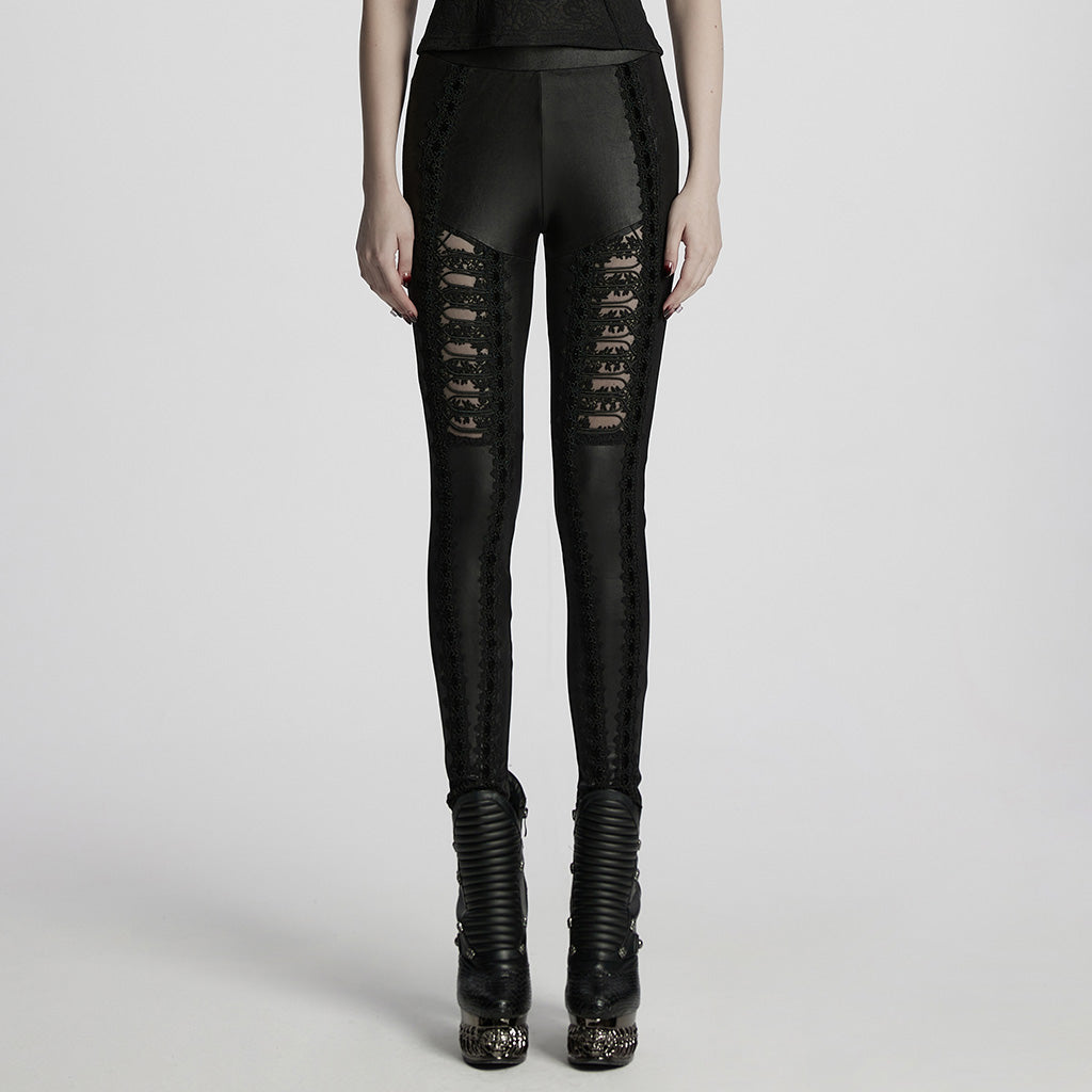 Embrace the essence of gothic fashion with these intricately designed leggings, combining exquisite lacework with a sleek modern fit.