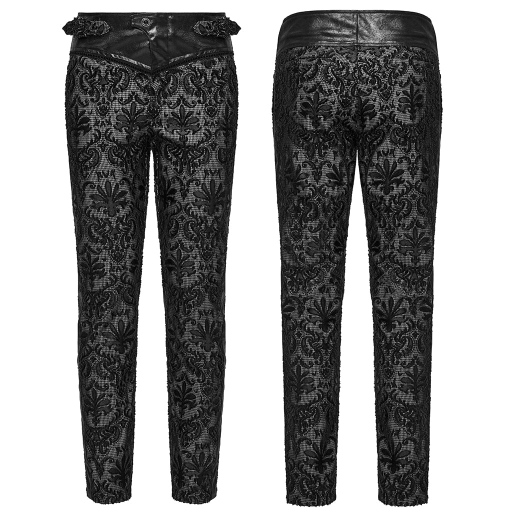 Introducing the Gothic Pants Black Lace Velvet Brocade High Waist Trousers, where classic elegance meets gothic allure. These trousers are crafted for those who desire a sophisticated yet bold look with intricate lace and plush velvet details that add depth and drama to any ensemble. Whether you're attending a formal event or curating a unique style, these pants offer a regal yet edgy vibe.