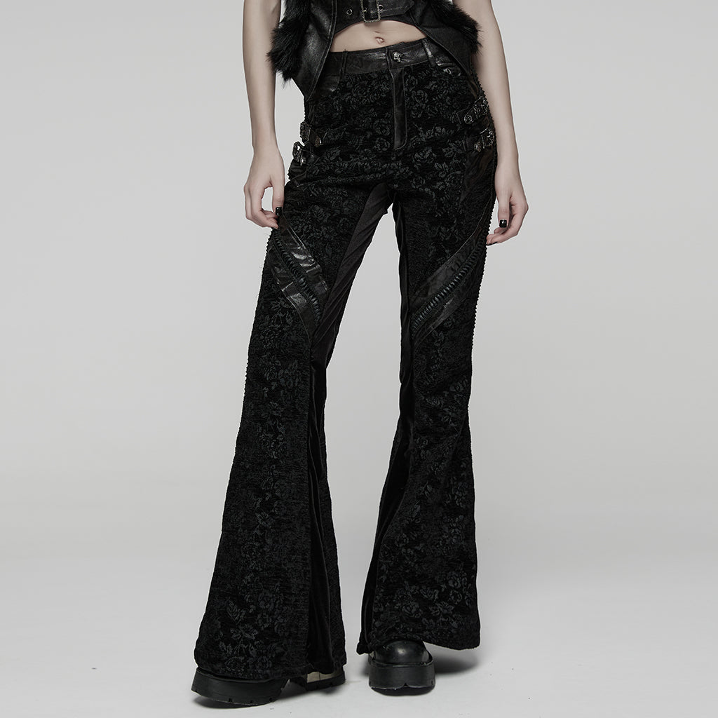 Introducing the Gothic Pants Black Brocade Flare High-Waisted Zipper Buckle Design, a perfect blend of dark elegance and modern edge. These pants are crafted for those who appreciate the dramatic allure of gothic fashion with a contemporary twist. With their striking high-waisted flared design and intricate brocade pattern, these pants make a powerful statement wherever you go.