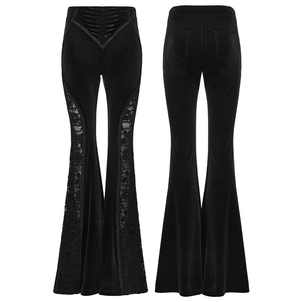 Step into a world of gothic elegance with these captivating velvet flare pants, where every detail speaks of mystery and sophistication.