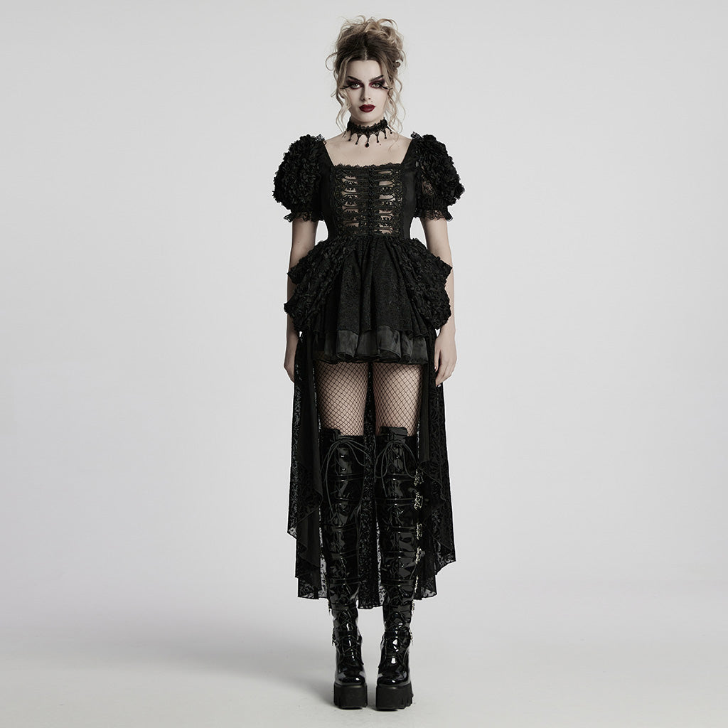 Introducing the Gothic Dress Victorian Steampunk Lace-Up High-Low Hem, a captivating blend of Victorian elegance and steampunk flair. This dress is designed for those who embrace the dark allure of gothic fashion, with intricate lace and a stunning high-low hem that commands attention. Whether stepping out for an evening event or creating an unforgettable statement, this dress ensures you exude grace and mystery.