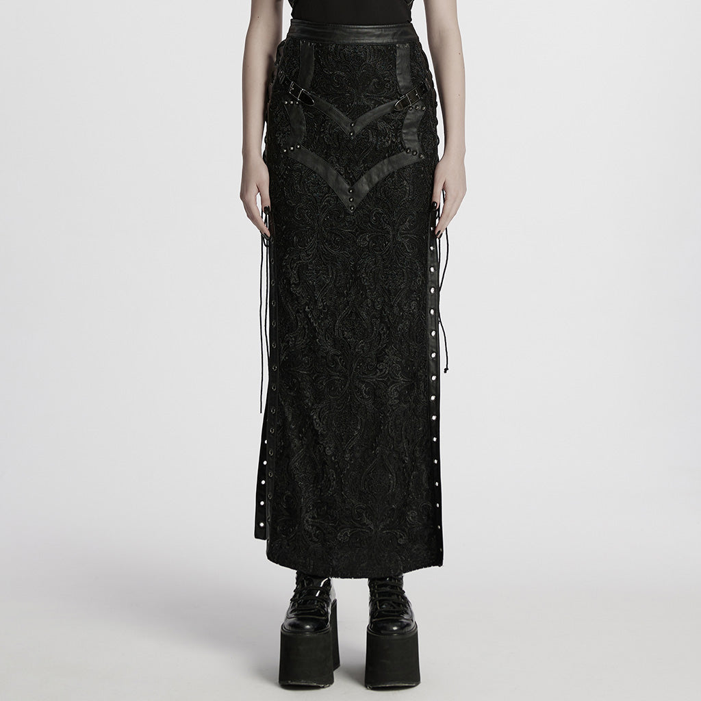 Elevate your gothic wardrobe with this exquisite skirt, seamlessly blending traditional lace with contemporary rivet accents.