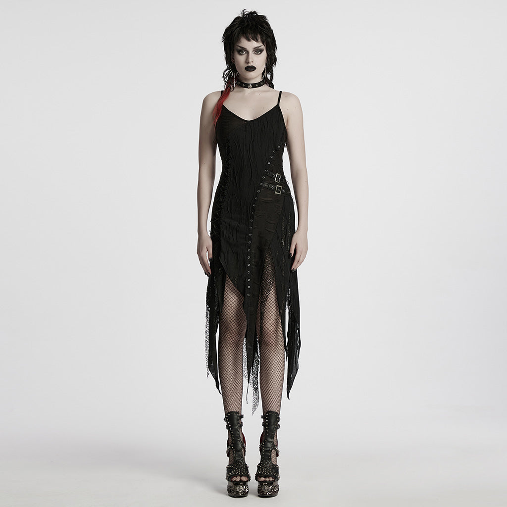 Introducing the Edgy Asymmetrical Gothic Dress with Strappy Details, a daring blend of dark elegance and avant-garde design. This Gothic Dress captivates with its dramatic asymmetrical hemline and intricate strap details, offering a unique silhouette that complements your boldest expressions. Whether you're embracing your inner darkness for a night out or seeking a standout piece for your wardrobe, this dress is your perfect choice.
