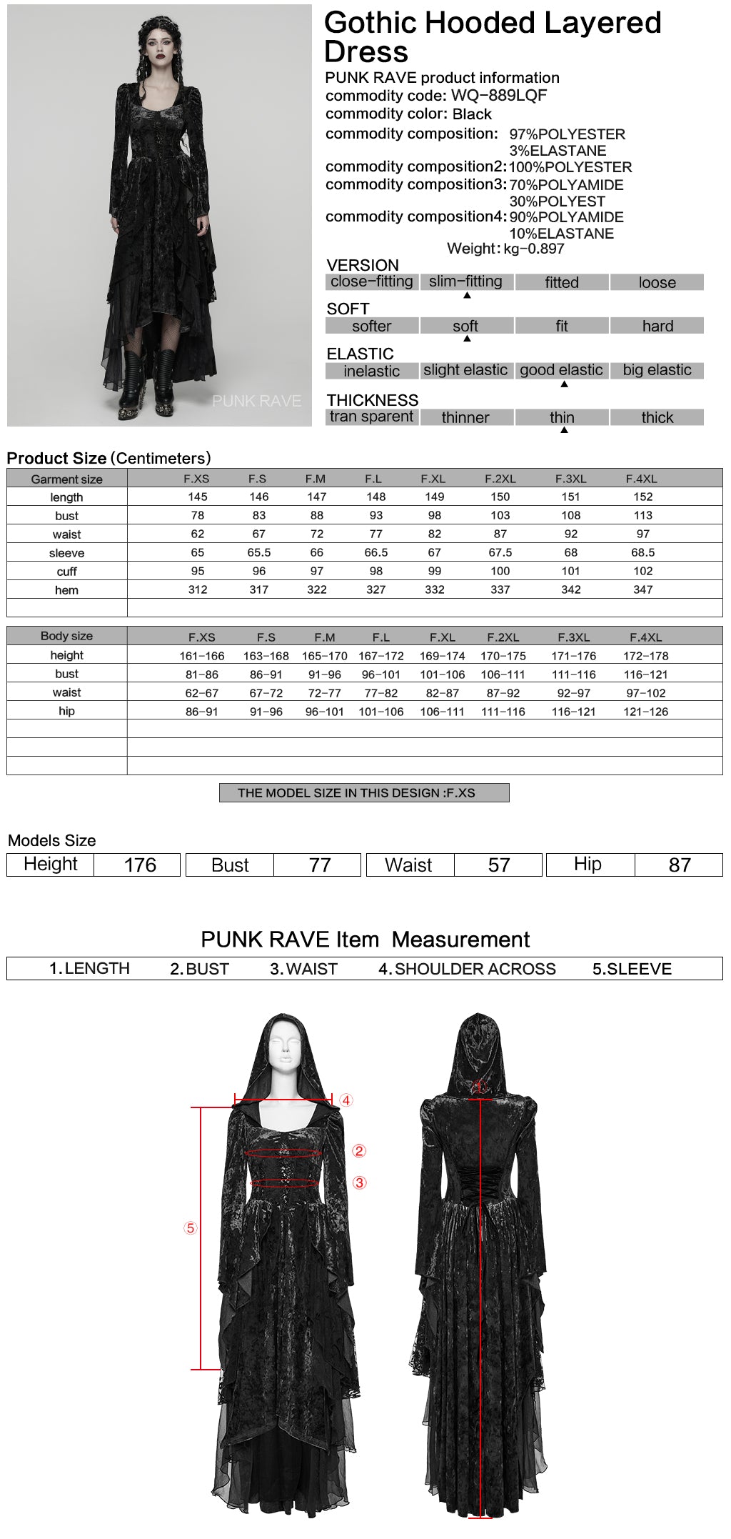 Fit and Feel: Tailored with a close fit, this dress contours elegantly while allowing for slight stretch. The sumptuous blend of materials delivers a soft, yet structured feel that embodies the quintessential gothic essence.