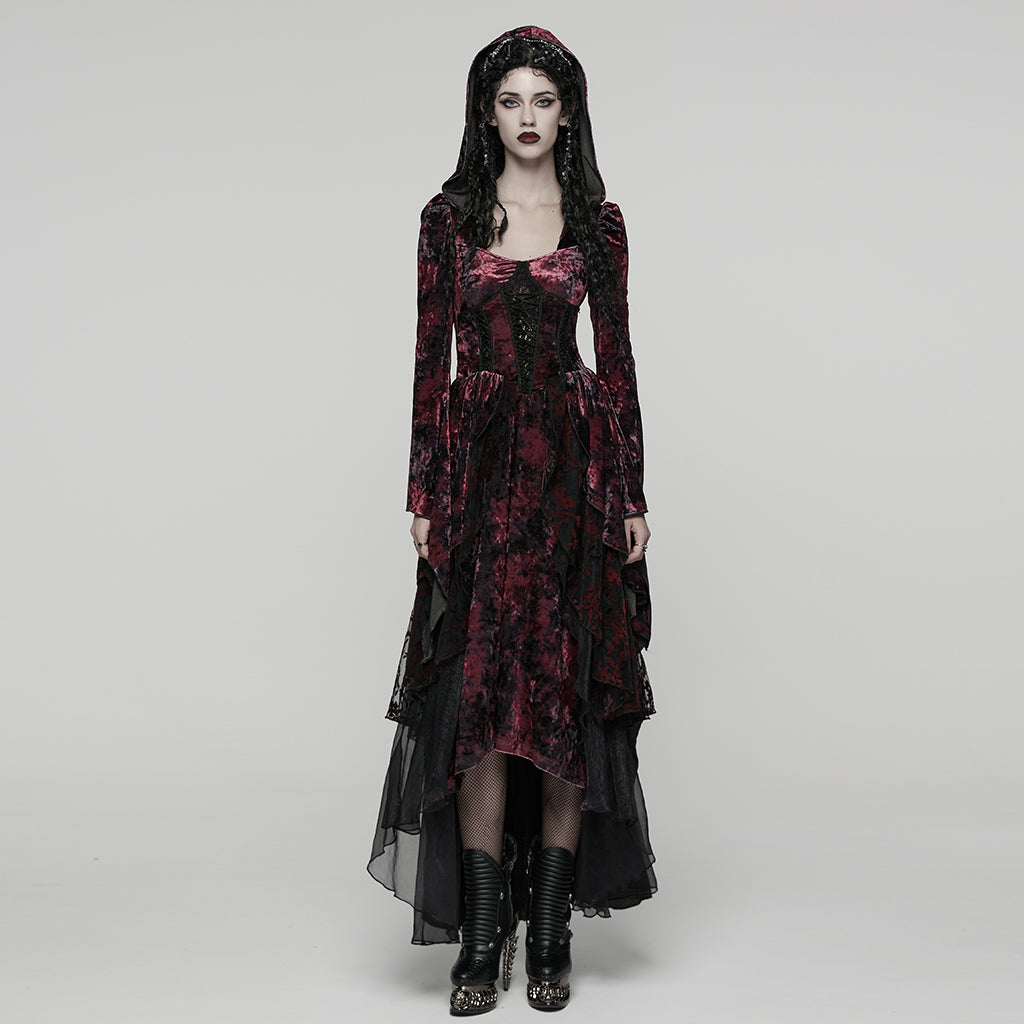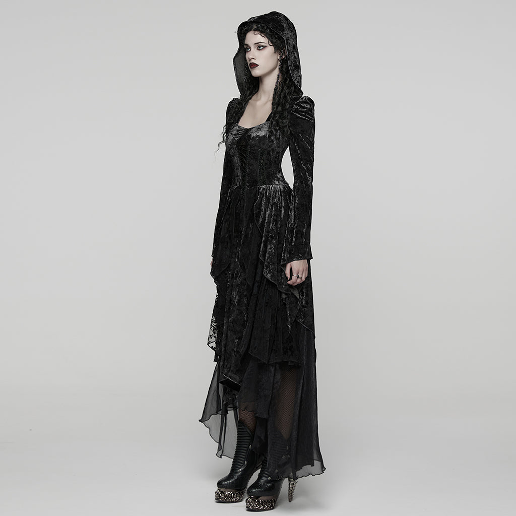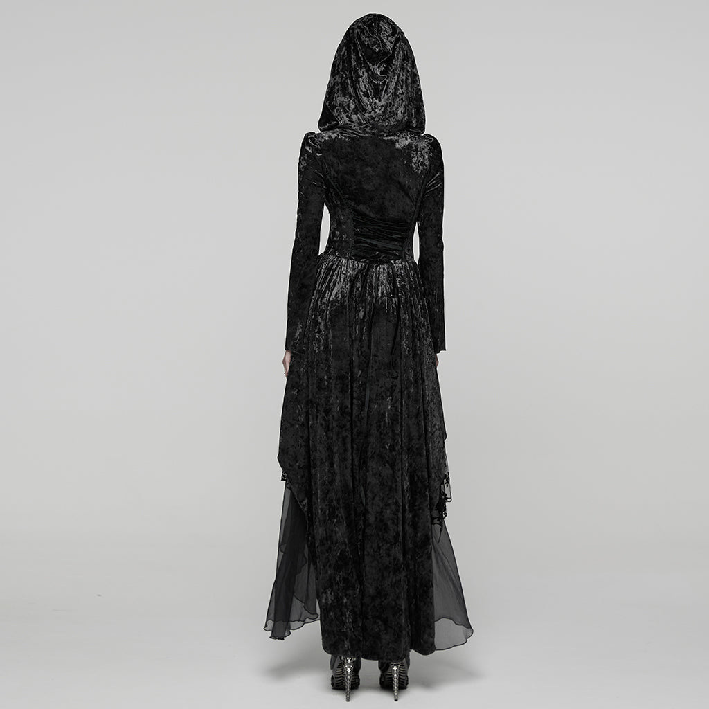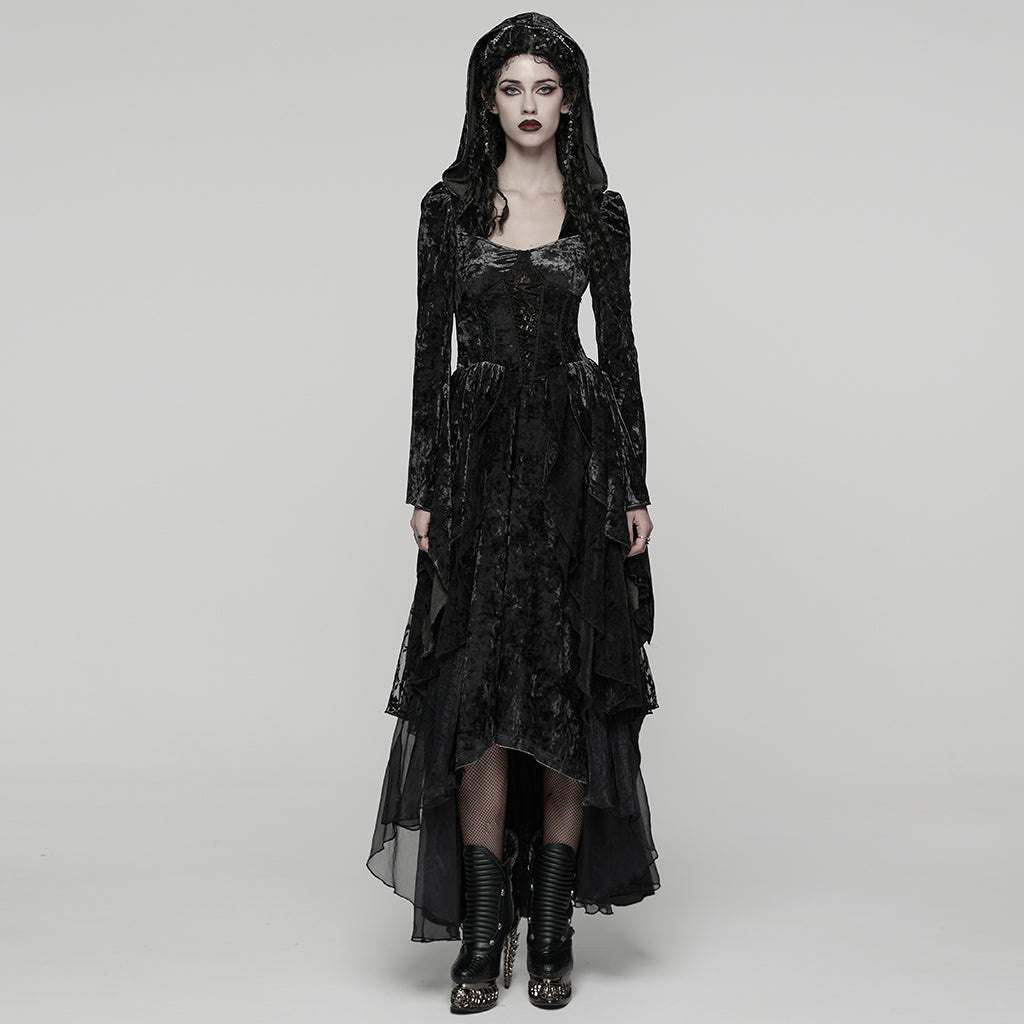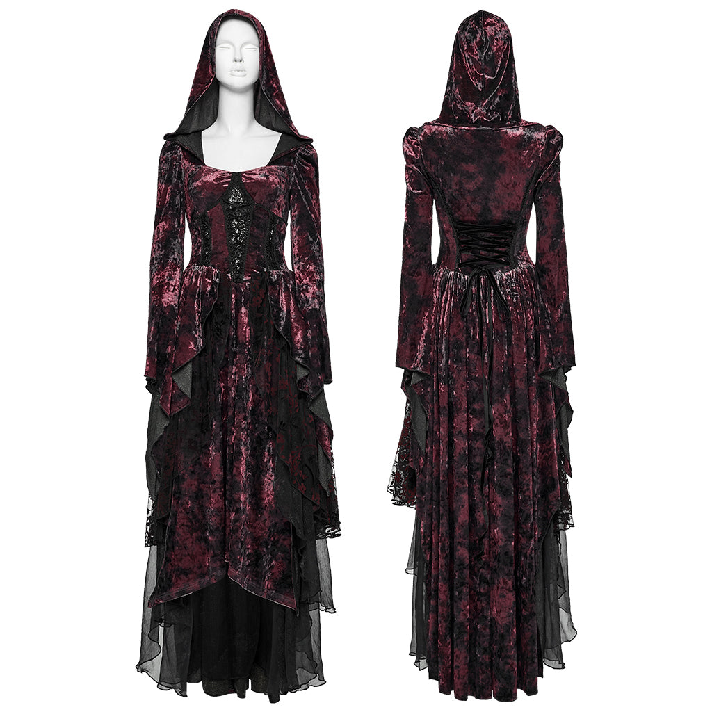 Introducing the Velvet Lace Gothic Dress, a mesmerizing blend of Renaissance elegance and Victorian charm. This hooded gown is designed for those who embrace their inner gothic mystique, with its intricate lace details and flowing velvet fabric. Perfect for making a grand entrance at any event, this dress lends a regal and dramatic flair to your ensemble.