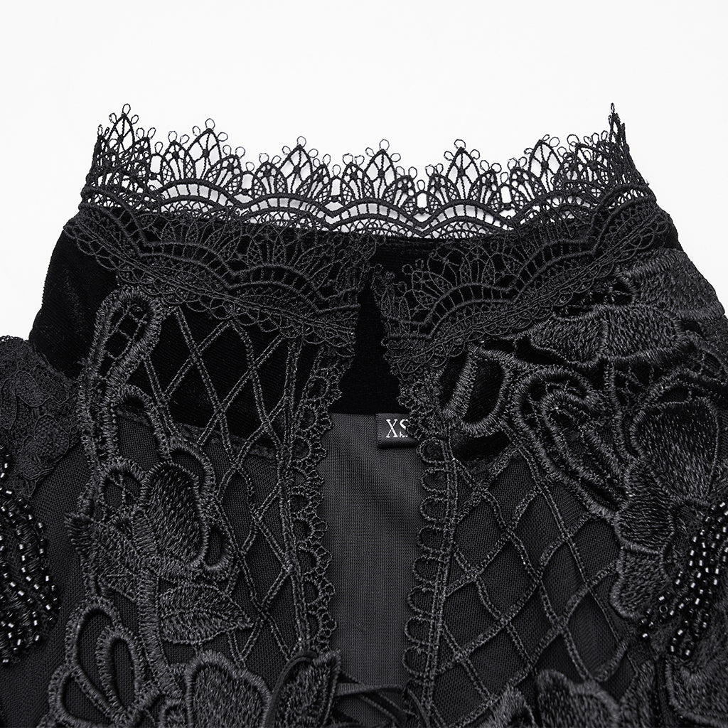 Style Inspiration: Pair this exquisite dress with a gothic coat for a mysterious and warm ensemble. Layer with a gothic blouse beneath to enhance the lace elements. Complement your look with a gothic pants for an edgy twist to the classic elegance.