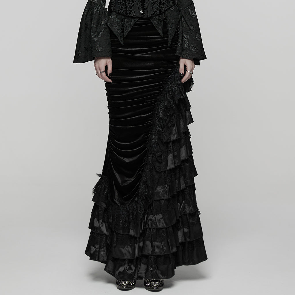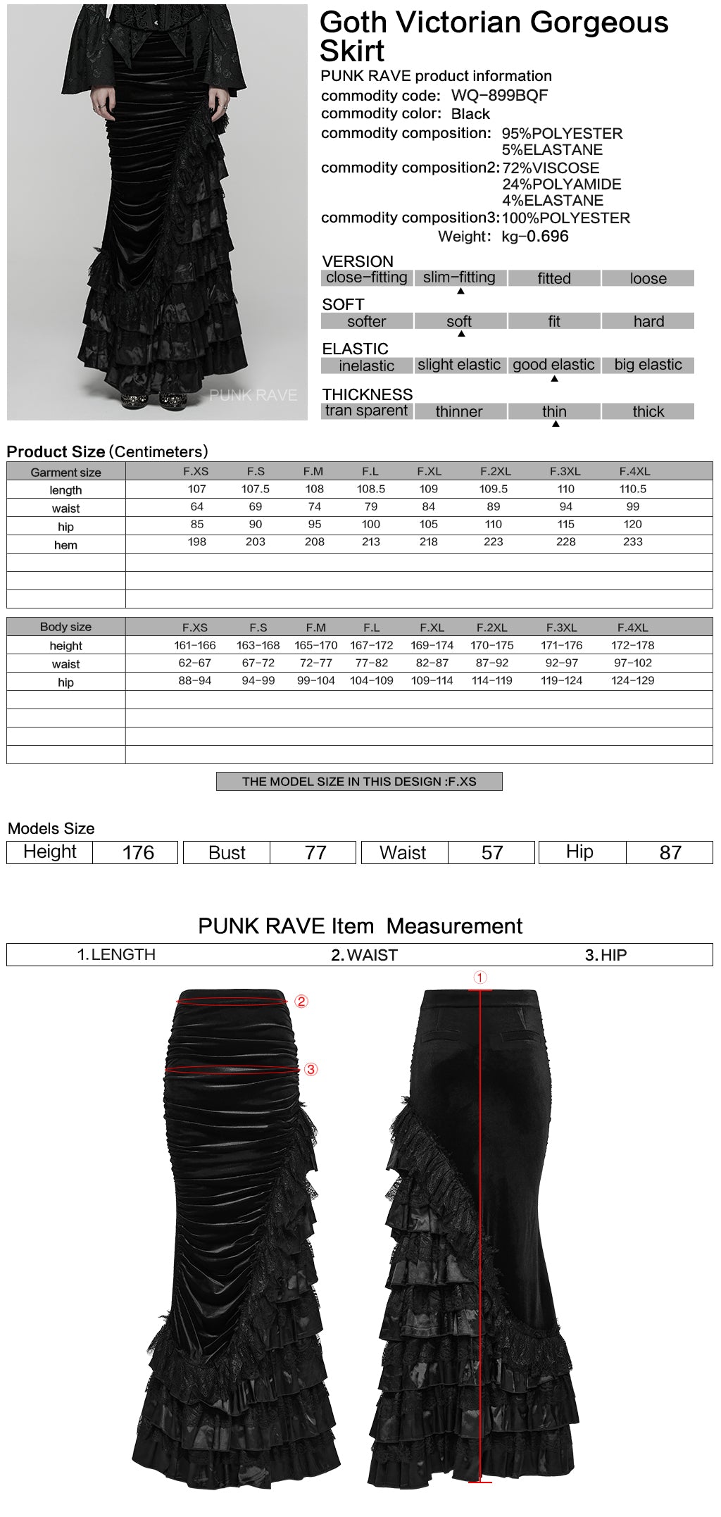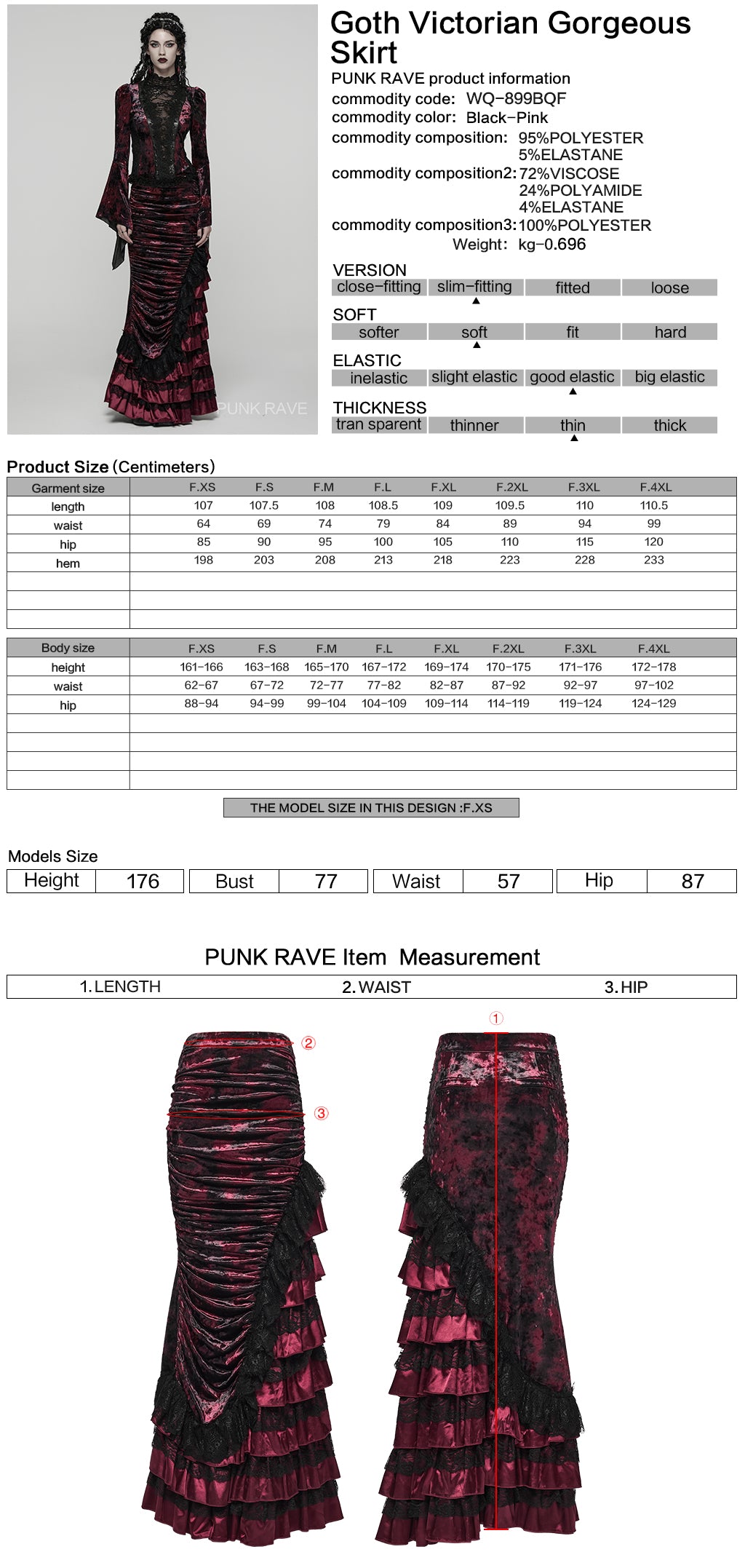 Fit and Feel: Designed with a close fit, this gothic skirt beautifully contours to the body while offering slight elasticity for comfortable movement. The blend of materials provides a luxurious feel, perfect for making a bold, elegant statement.