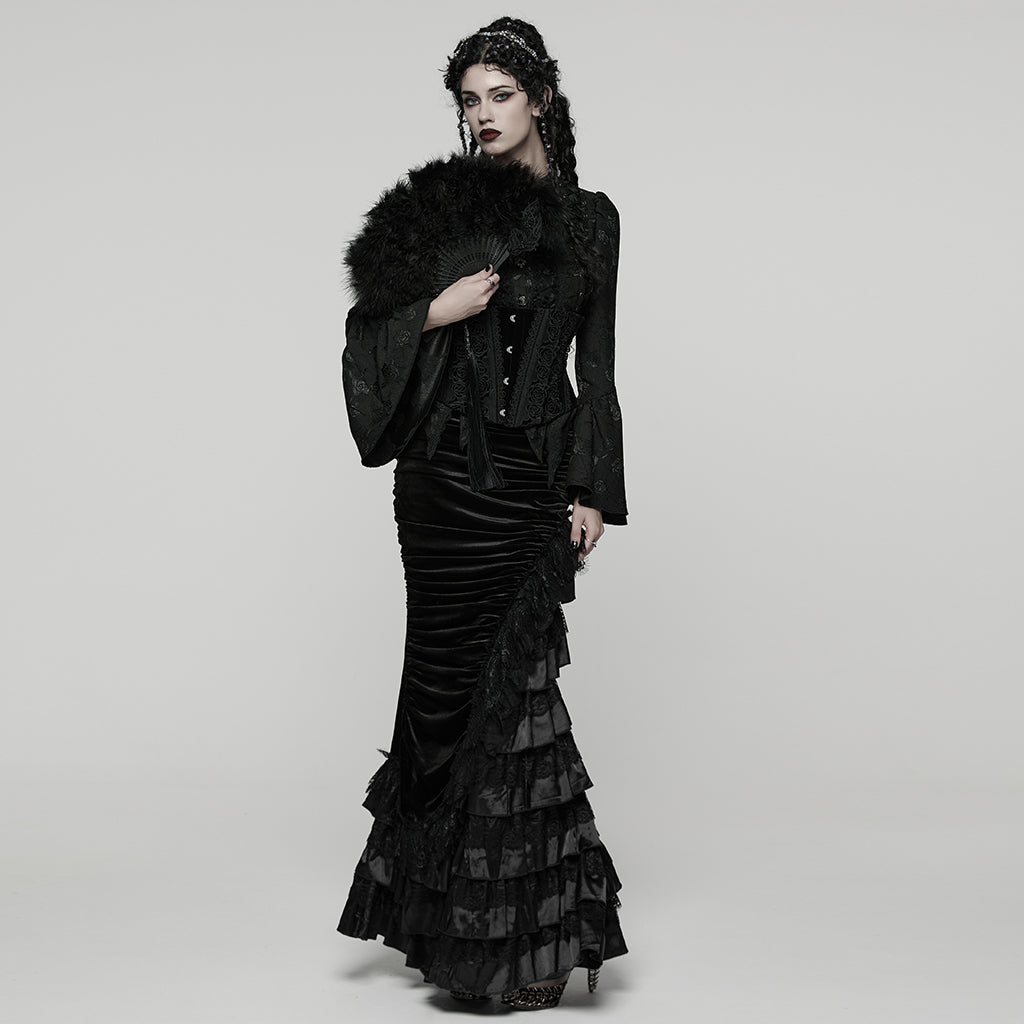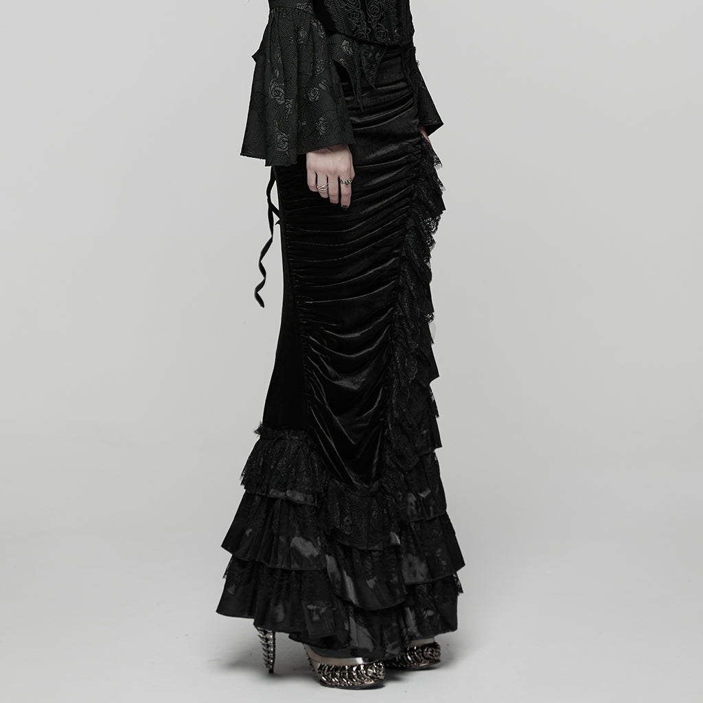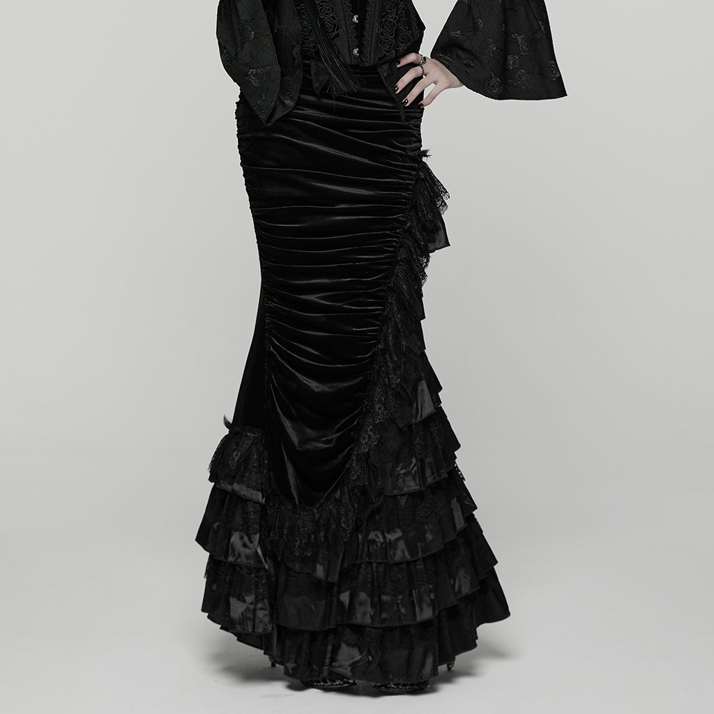 Fit and Feel: Designed with a close fit, this gothic skirt beautifully contours to the body while offering slight elasticity for comfortable movement. The blend of materials provides a luxurious feel, perfect for making a bold, elegant statement.
