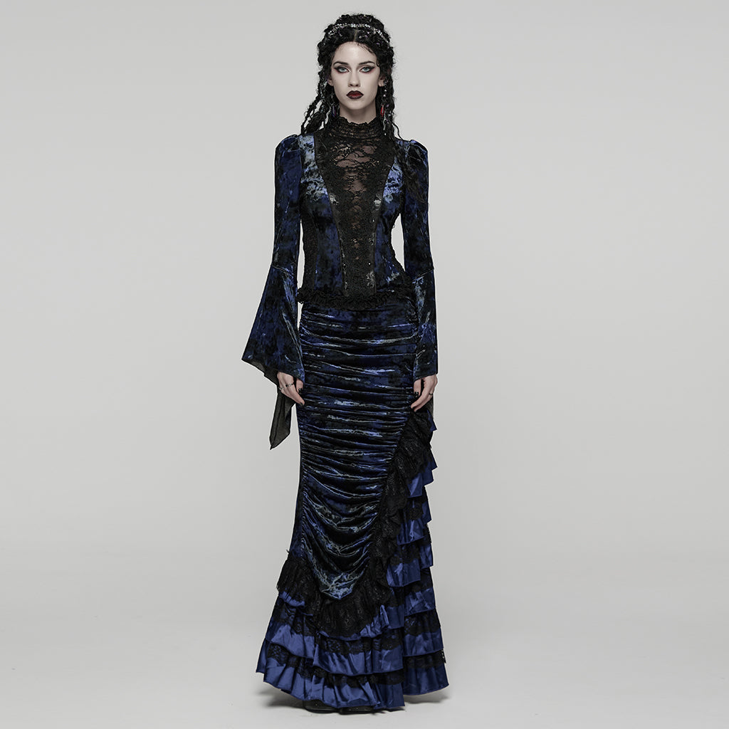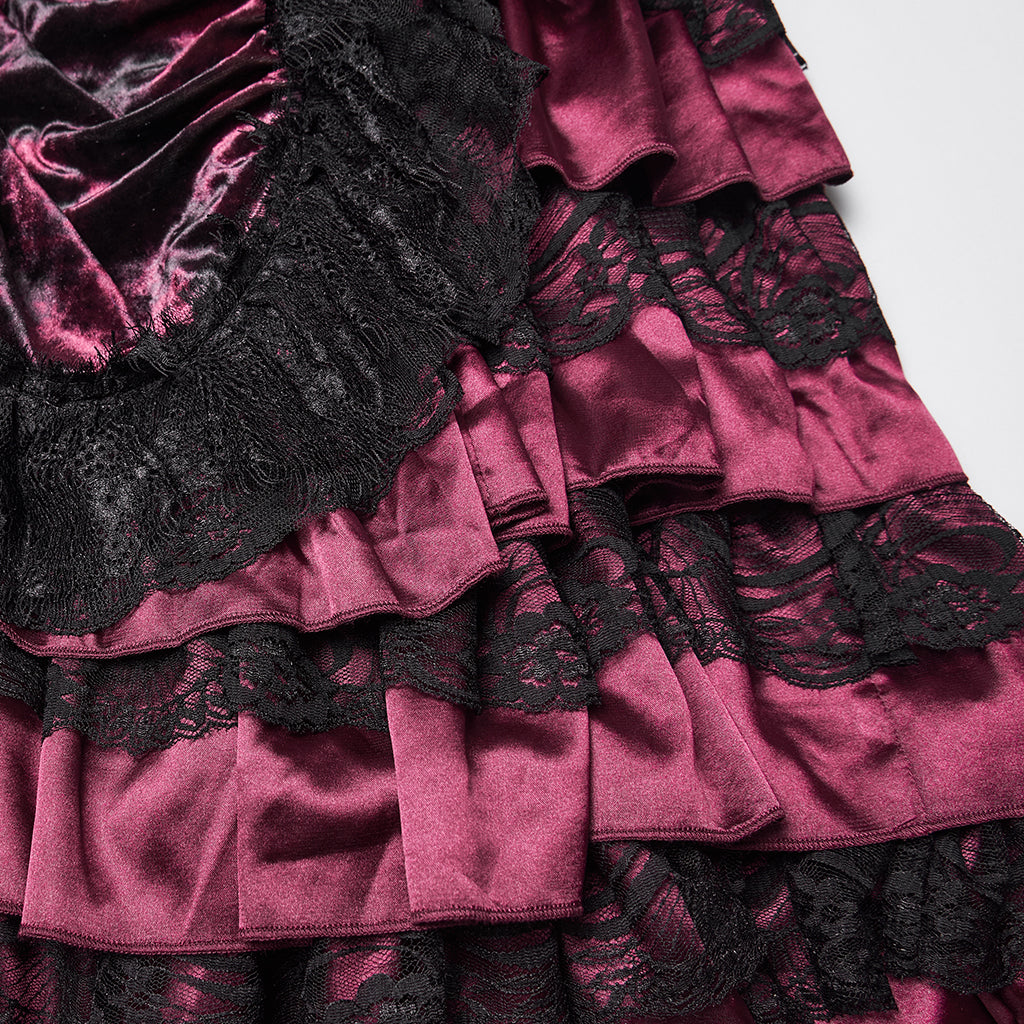 Introducing the Victorian Gothic Skirt Velvet Lace Ruffle Elegance in Dark Red, a masterpiece of dramatic elegance and timeless gothic style. This skirt captivates with its rich velvet texture and intricate lace detailing, evoking a sense of regal sophistication. Ideal for those who appreciate the beauty of Victorian-inspired fashion, this skirt effortlessly elevates any ensemble to new heights of gothic glamour.