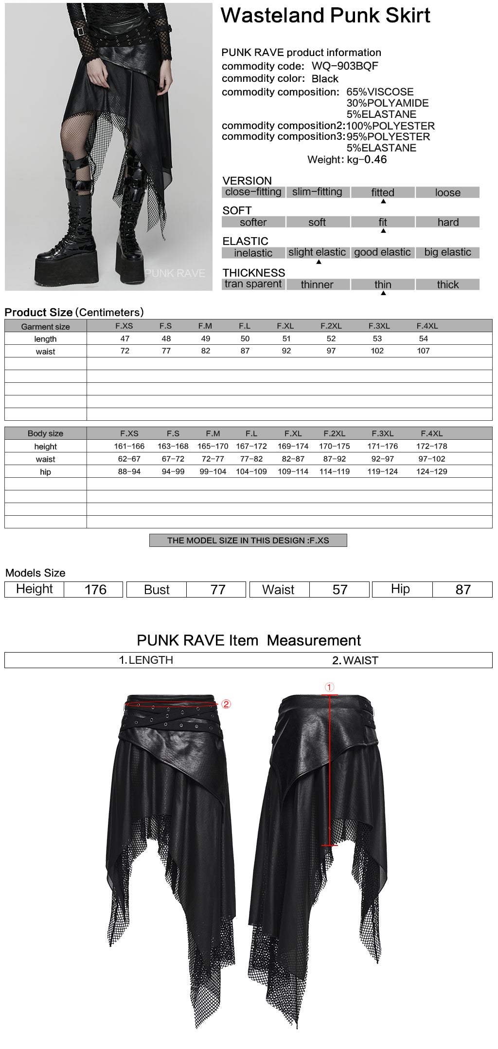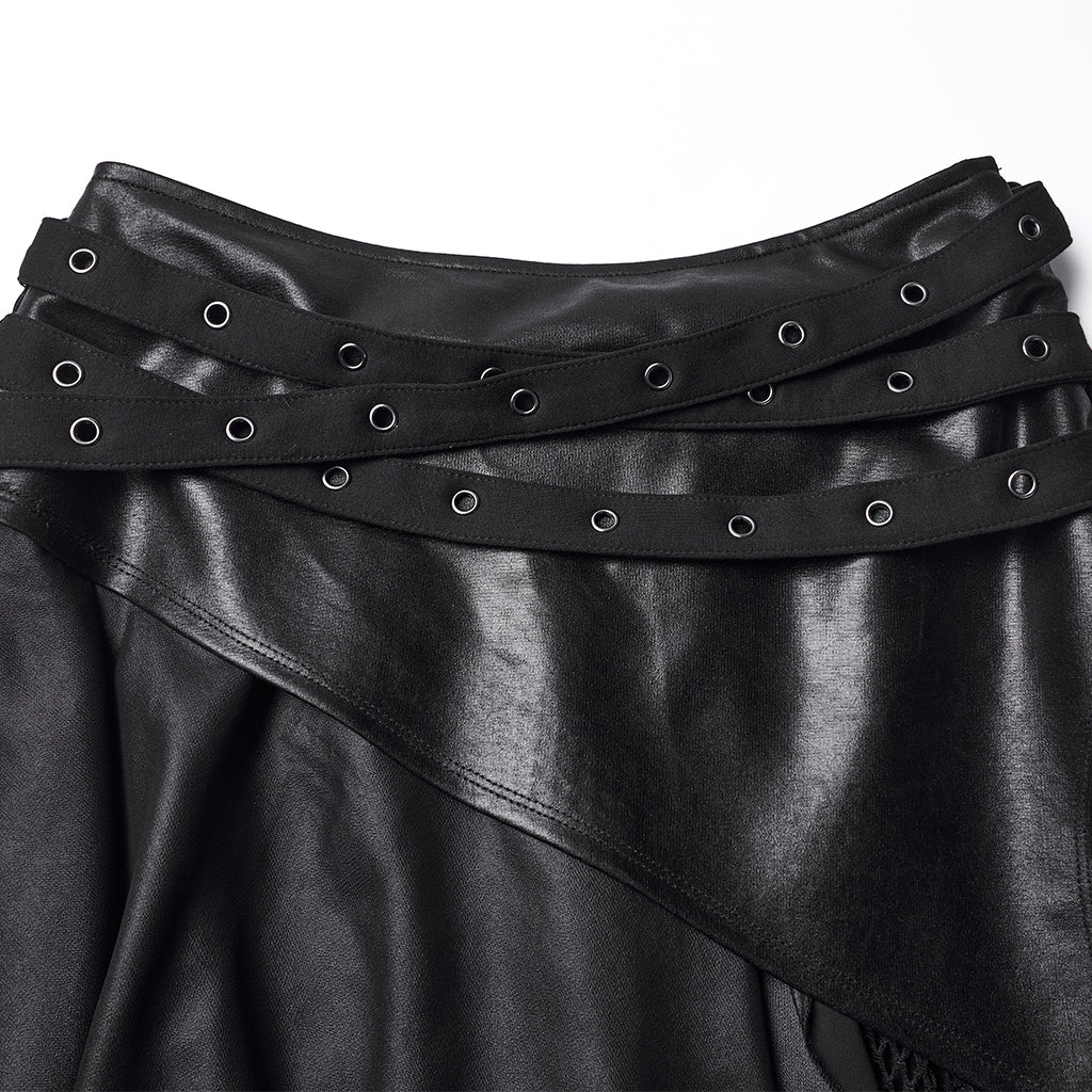 Introducing the Edgy Asymmetric Black Punk Skirt with Mesh and Faux Leather, a striking blend of rebellious attitude and cutting-edge fashion. This punk skirt is crafted for those who dare to defy convention, featuring an asymmetric design and bold mesh accents that transform any look into a bold statement. Perfect for making an unforgettable impression whether you're on the street or at a gig.