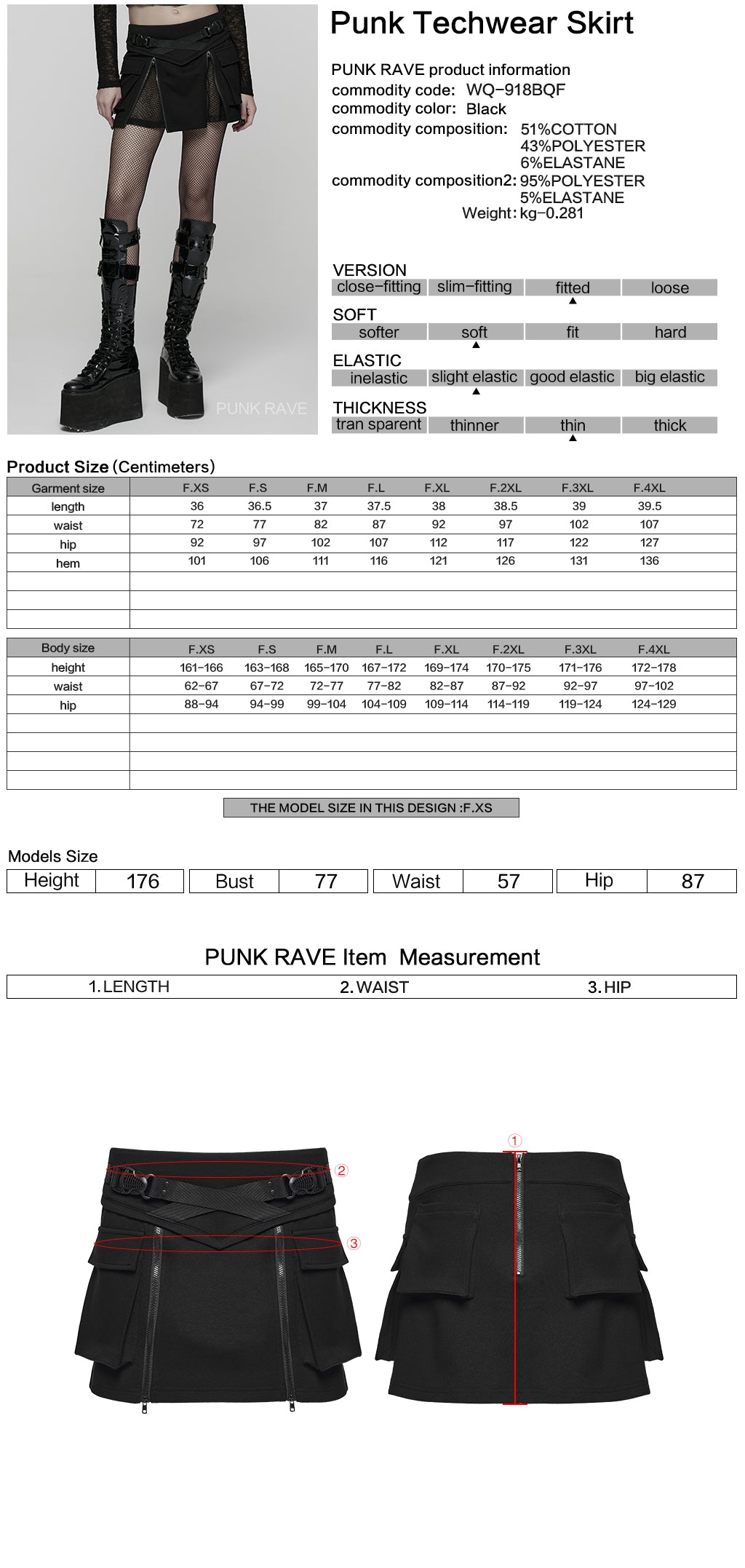 Fit and Feel: This punk skirt offers a close-fitting design with slight elasticity to ensure comfort and ease of movement. The use of high-quality materials provides a soft touch against the skin while maintaining a bold, structured silhouette that adheres to the punk aesthetic.