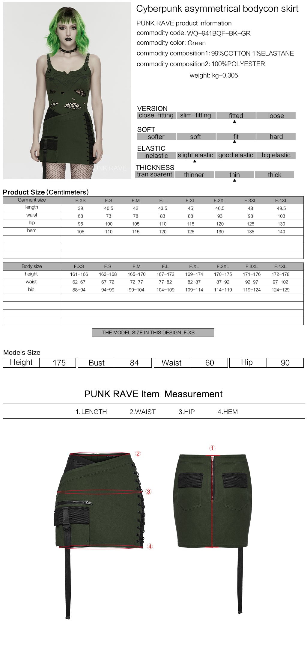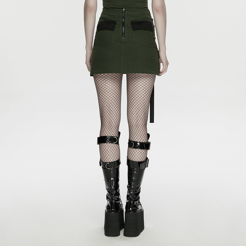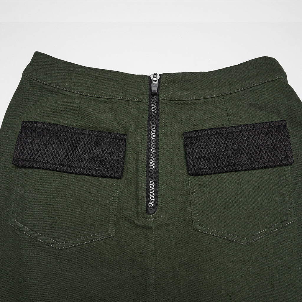 Introducing the Edgy Green Punk Skirt with Fishnet and Pocket Detailing, a remarkable blend of punk rebellion and contemporary style. This punk skirt is crafted for those who embrace a daring, unconventional look, featuring unique fishnet accents and functional pockets that add a striking edge to any ensemble. Whether you're exploring the city or making a bold statement at an event, this skirt is your essential piece for a standout look.