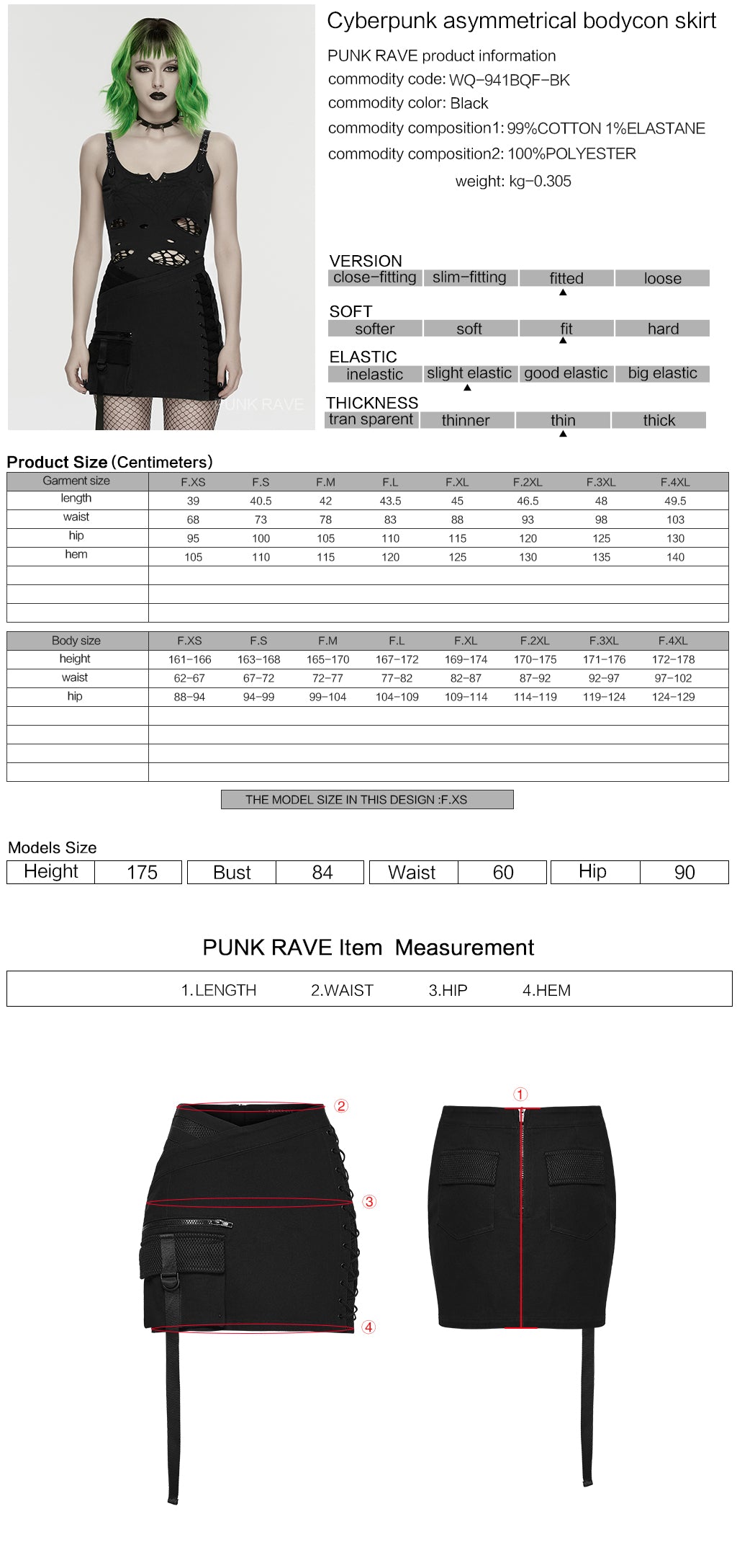 Fit and Feel: Designed to hug the body with a slight stretch, this skirt provides a comfortable fit that moves with you. Its structured design complements punk culture, offering a bold and assertive visual impact.