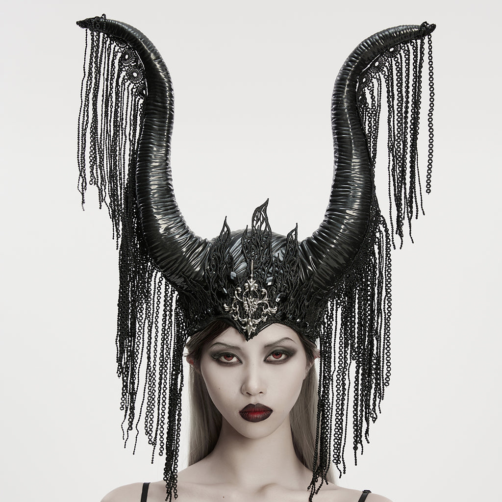 Step into a world of gothic fantasy with this commanding headdress, weaving dark intrigue with timeless gothic elements.