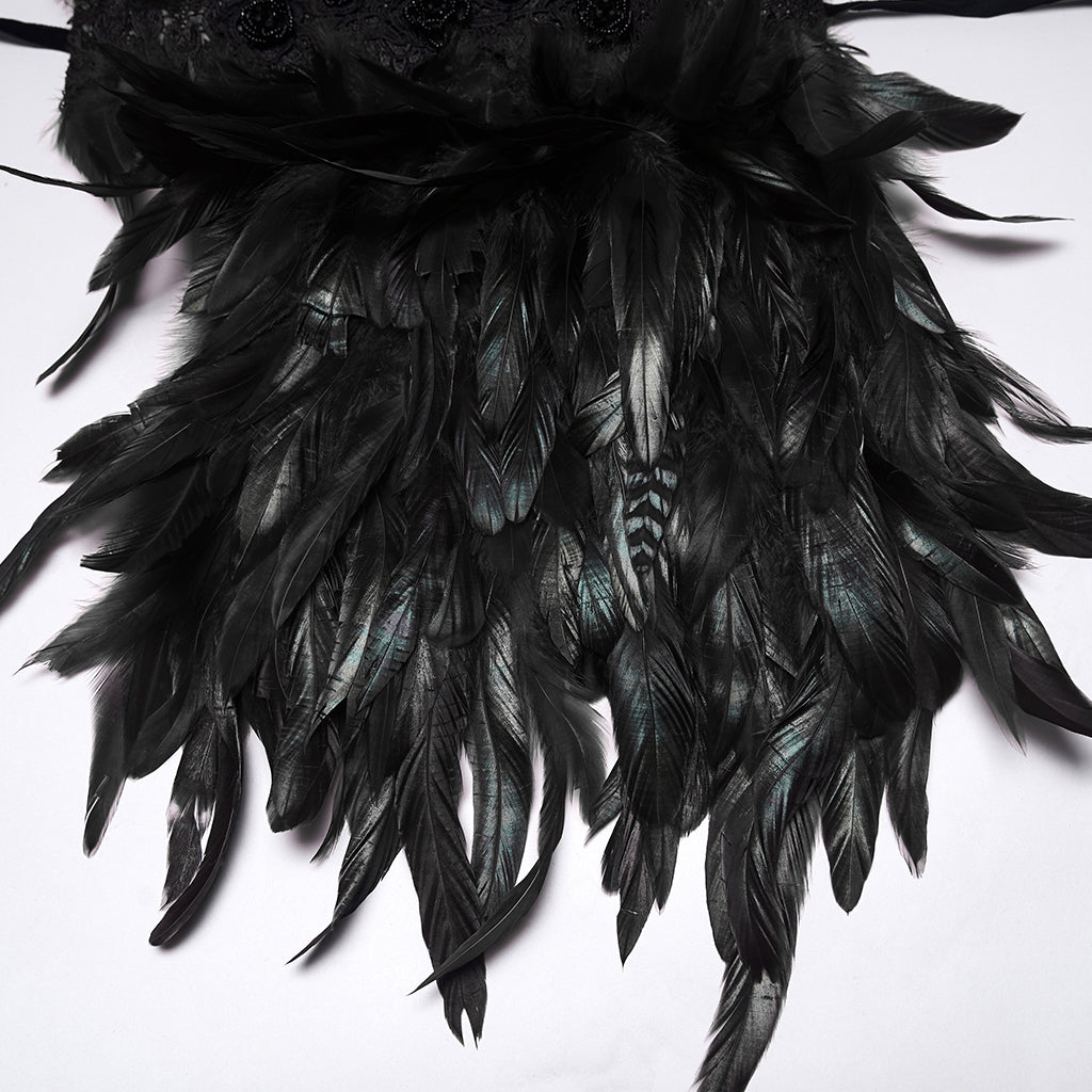 Embrace the gothic essence with this feathered neckpiece, perfect for those who dare to be different and make a captivating statement.