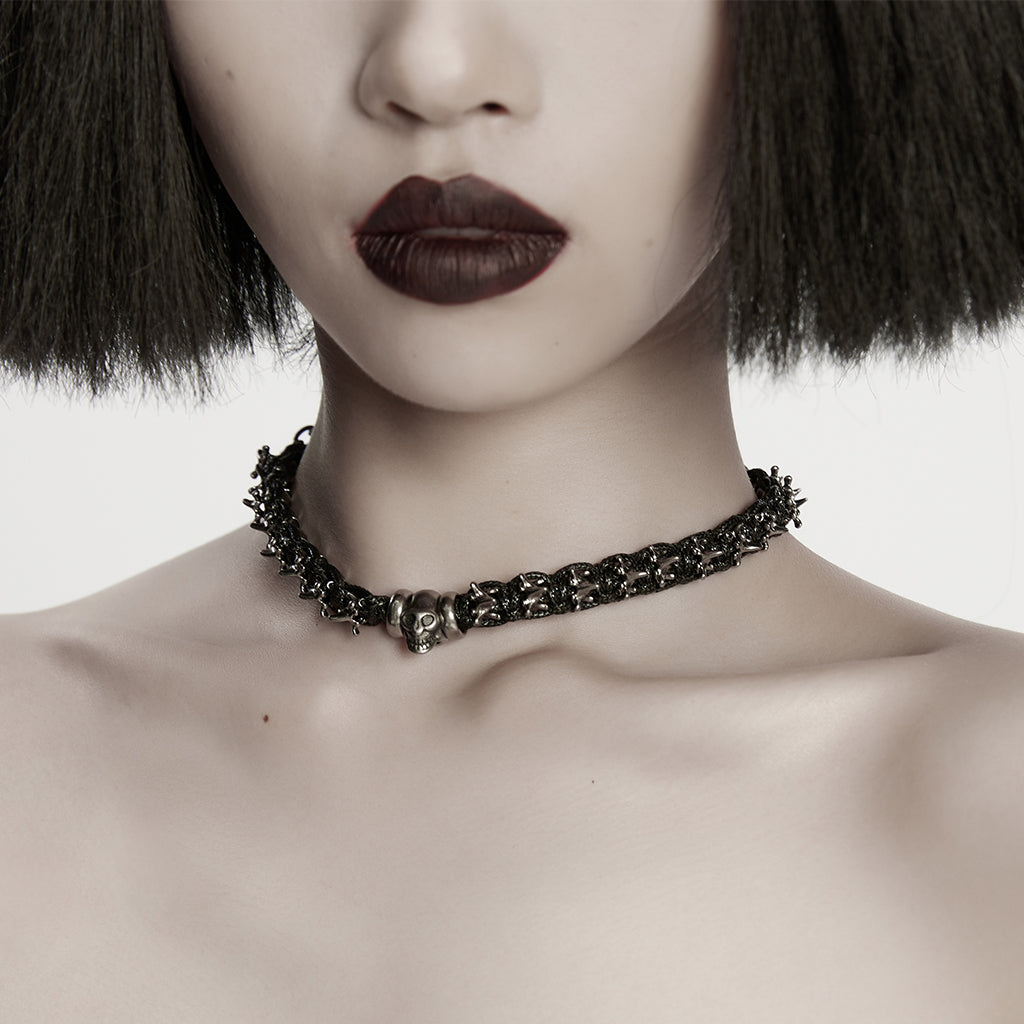 Step into a world of alternative fashion with this statement choker, merging punk vibes with gothic allure.