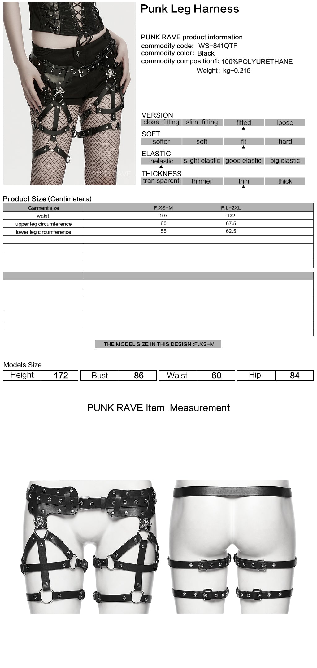 Embrace the essence of punk fashion with this statement leg harness, merging iconic punk details with a contemporary twist.