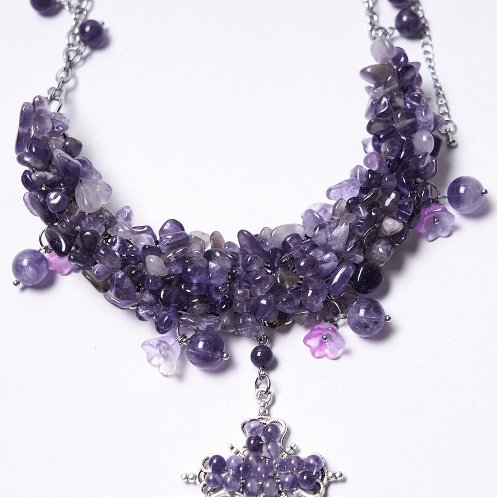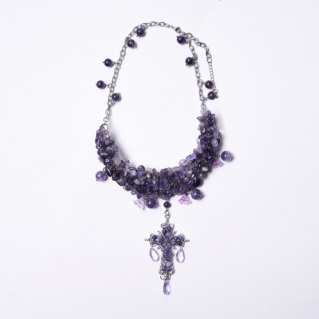 Step into the realm of gothic fashion with this exquisite amethyst crystal cross necklace choker, embodying a harmonious blend of elegance and gothic influences.