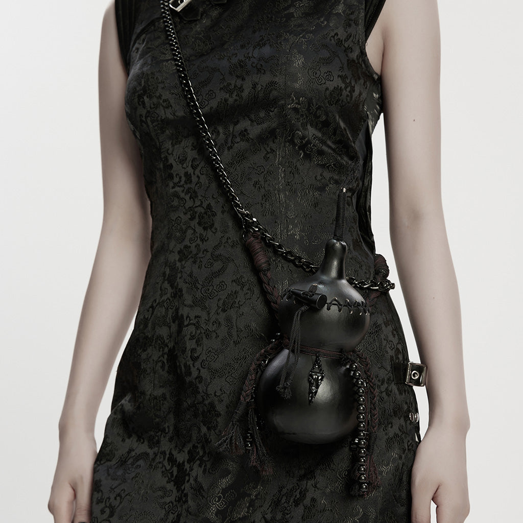 Introducing the Gothic Accessories Dual-Chamber Leather Flask with Chains and Tassels, a striking blend of practicality and edgy gothic allure. Designed for those who embrace the dark and mysterious, this accessory is a must-have for making a bold statement. Perfect for enhancing your ensemble, it effortlessly combines functionality with gothic style.