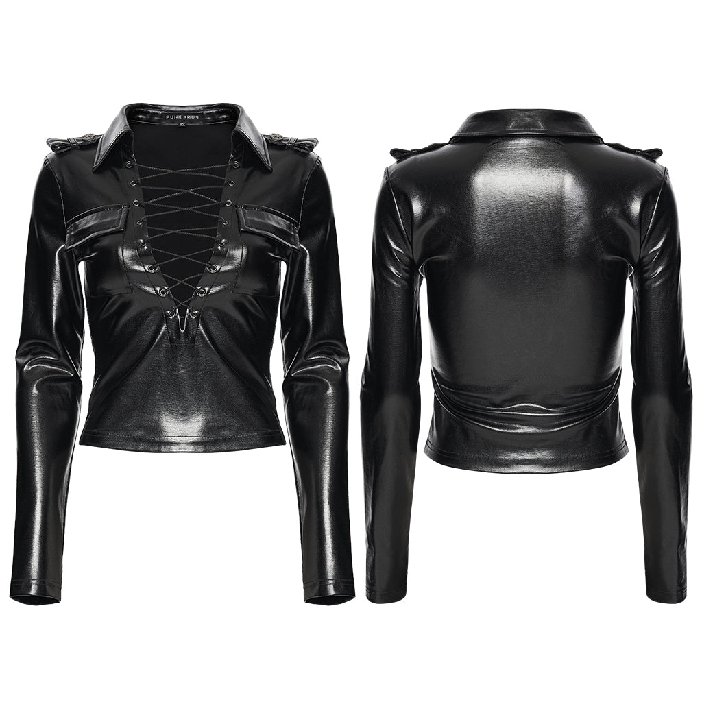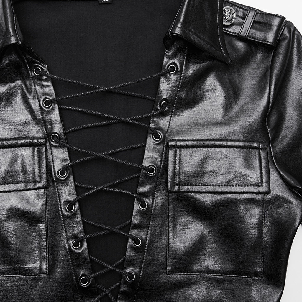Introducing the Edgy Lace-Up Black Leather Punk T-Shirts, where the raw energy of punk meets a daring, modern twist. Tailored for the bold, this piece is perfect for making a rebellious statement with its striking lace-up design and sleek leather finish. Whether you're leading the charge at a concert or elevating your everyday wardrobe, this T-shirt is your go-to for an unmistakably fierce style.
