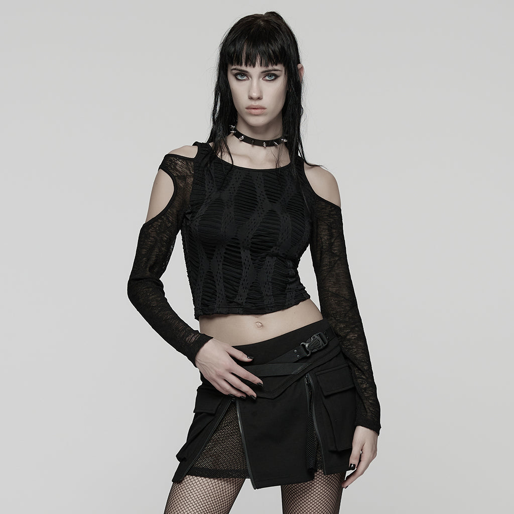 Introducing the Edgy Black Cutout Long Sleeve Punk T-Shirts Top, merging bold design with undeniable attitude. This piece perfectly captures the essence of punk fashion with its striking cutout details and sleek silhouette, designed for those who dare to express their individuality. Whether you’re going for a night out or adding an edge to your everyday ensemble, this top is your statement piece for a distinctive punk look.