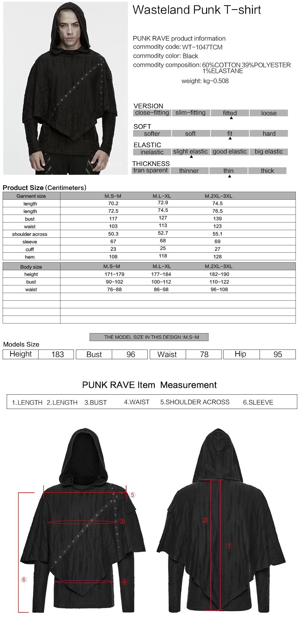 Introducing the Gothic Hooded Punk T-Shirts with Rivet Accent Design, a striking blend of gothic mystery and punk rebellion. This t-shirt is crafted for those who embrace a daring, unconventional style, featuring distinctive rivet accents that add a bold flair to any ensemble. Perfect for making a statement on the streets or as a standout addition to your wardrobe, this piece embodies an effortlessly cool punk vibe.