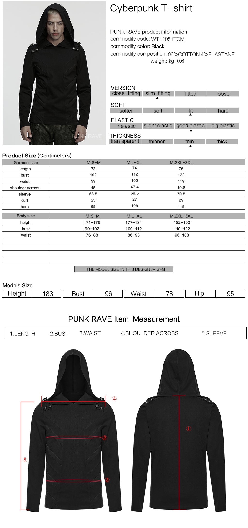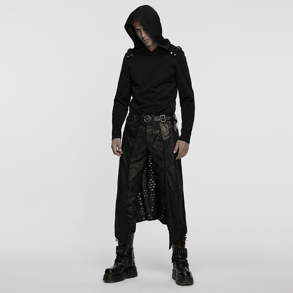 Embrace the essence of rebellious fashion with the Punk Shirts Mens Black Hooded Strap Detail Long Sleeve Top, designed to redefine your wardrobe with an unyielding punk attitude.