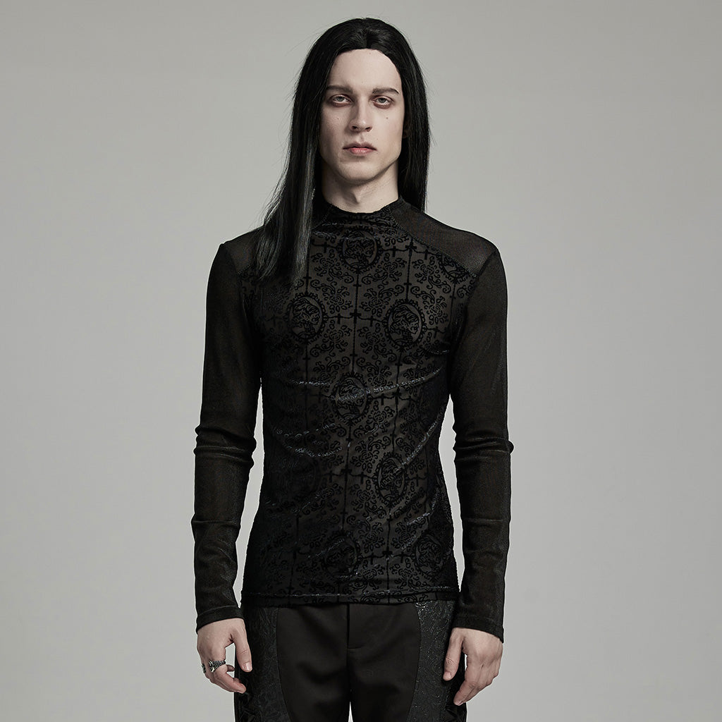 Introducing the Men's Gothic T-Shirt Intricate Lace Long Sleeve Top, a striking blend of gothic elegance and contemporary fashion. This top is designed for those who embrace a dark, alluring aesthetic, featuring detailed lacework that transforms any ensemble into a statement. Whether you're stepping out for a night event or enhancing your everyday wardrobe, this shirt is your perfect choice for an effortlessly gothic look.