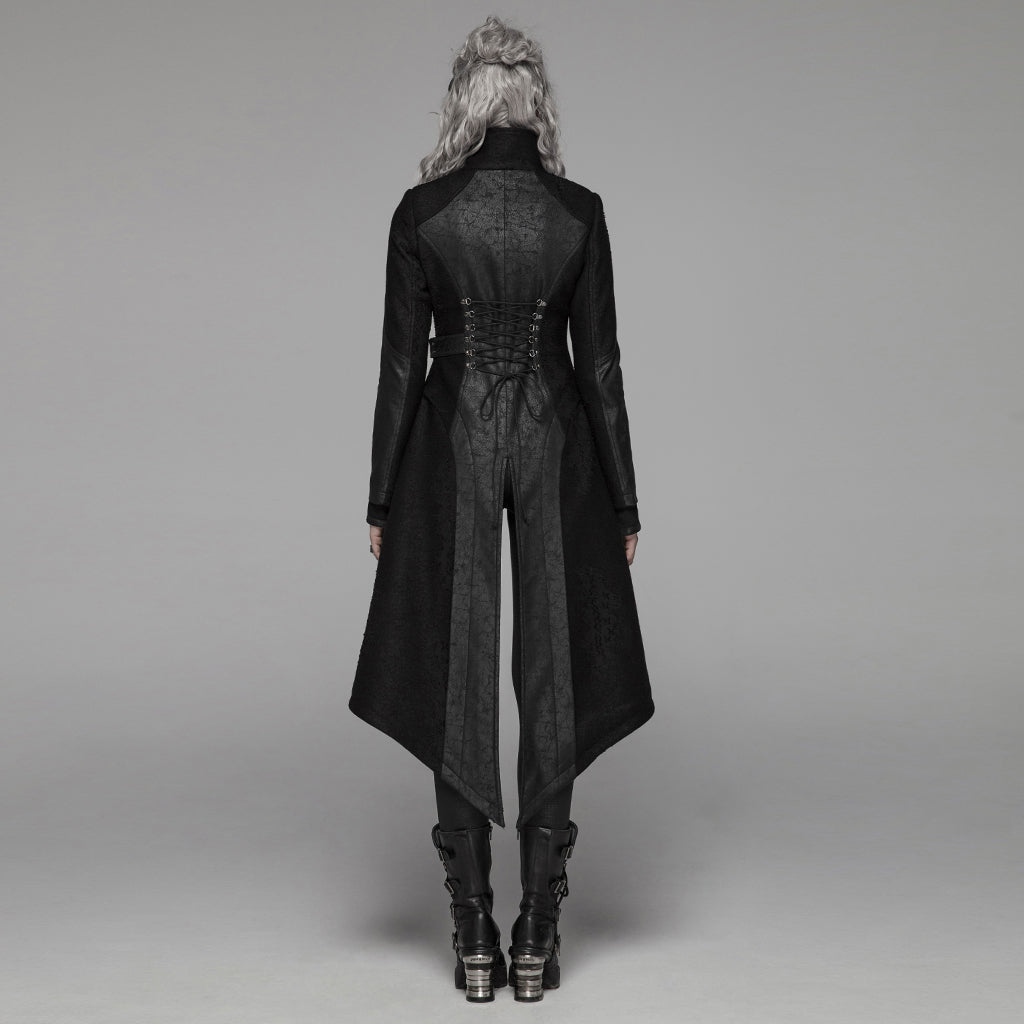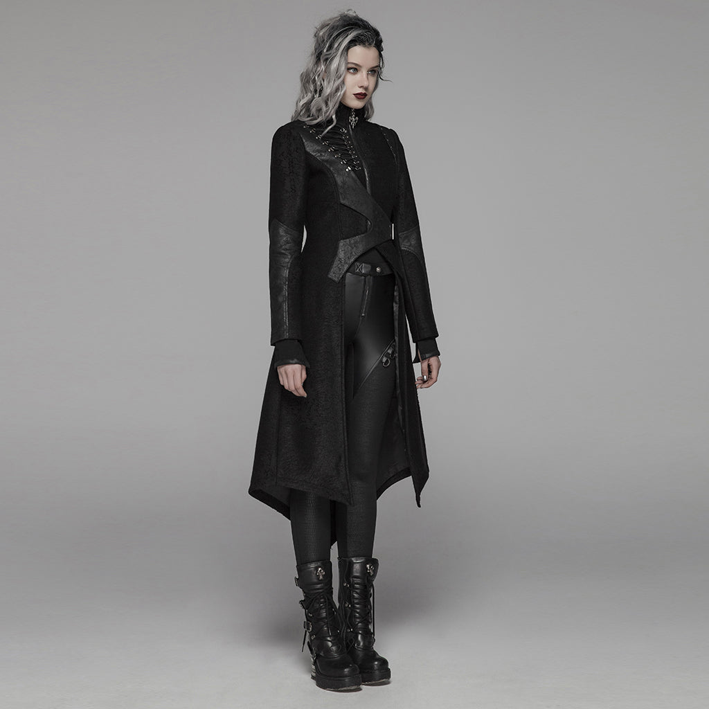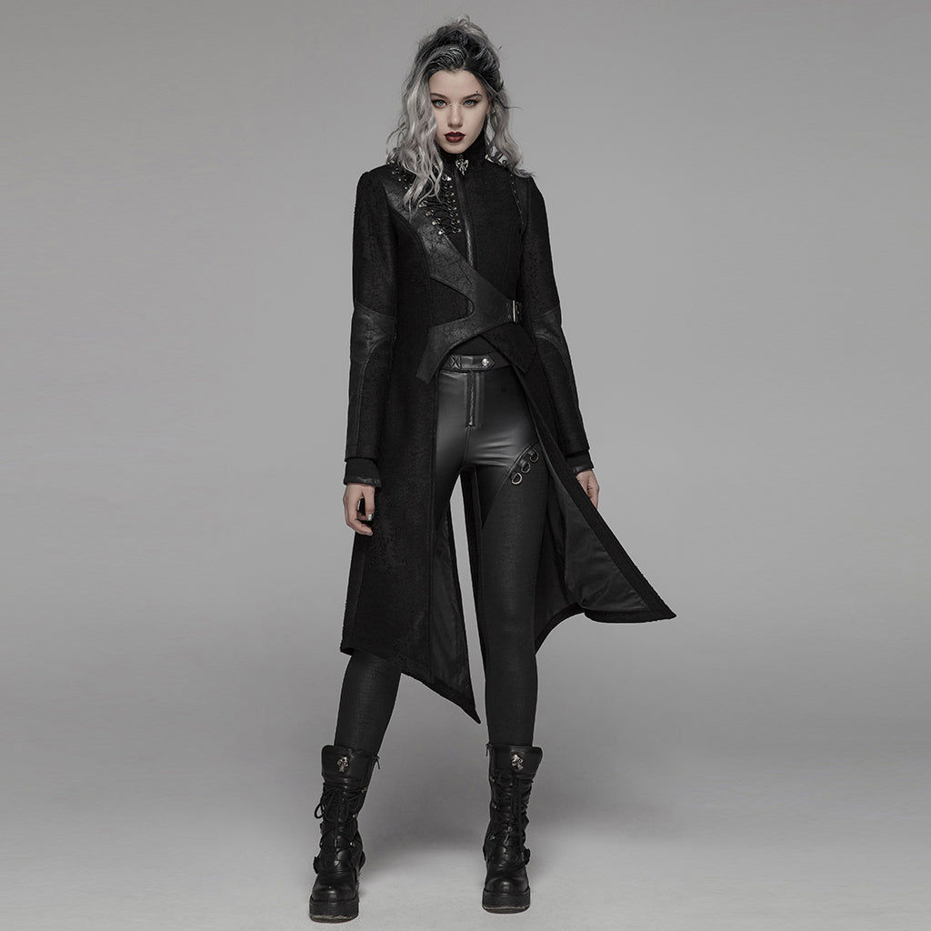 Unveil your dark elegance with the Gothic Asymmetrical Punk Jackets Long Tailcoat, a masterpiece blending steampunk influences with edgy punk aesthetics. This statement piece is designed for those who dare to stand out, featuring a dramatic long tail and tailored fit that accentuates any silhouette. Perfect for making a bold impression, whether you're at a gothic gathering or embracing a unique street style.