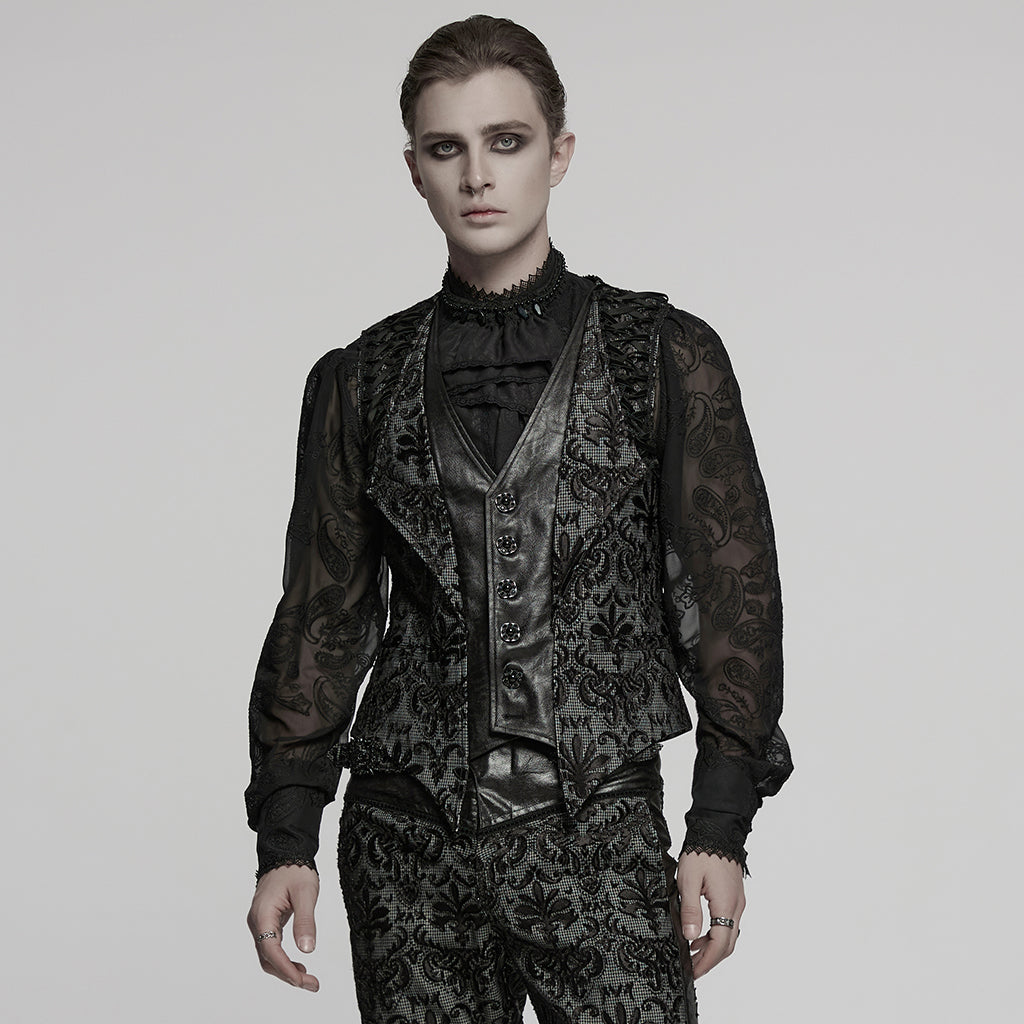 Introducing the Men's Gothic Vest Embroidered Lace Button Up Vintage Style, a timeless piece that merges intricate Victorian elegance with the boldness of modern gothic fashion. This vest is crafted for those who appreciate sophisticated detailing and luxurious textures, perfect for making a statement at any event.