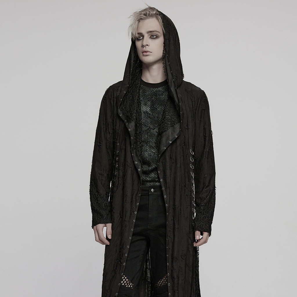 Introducing the Mens Gothic Jacket Hooded Long Trench Coat with Chains, where dark decadence meets contemporary fashion. This Gothic Jacket is crafted for those who embrace edgy elegance, featuring a dramatic hood and intricate chain details. Perfect for making a bold statement on the streets or adding a mysterious touch to your wardrobe, this coat is your go-to piece for a captivating, gothic look.