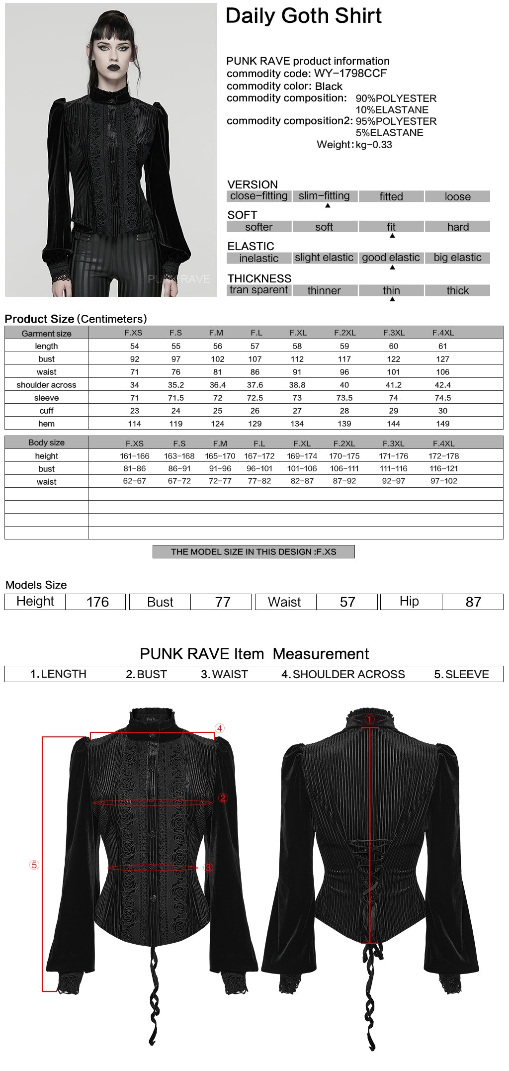 Style Inspiration: Pair with gothic skirts for a complete Victorian-inspired look, or layer under a gothic coat for added drama. Accessorize with a punk accessory to personalize your gothic ensemble.