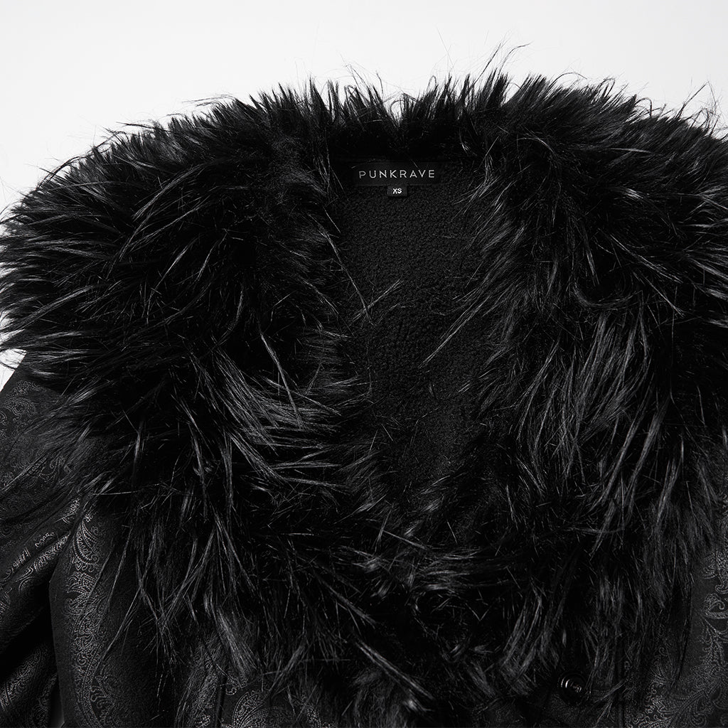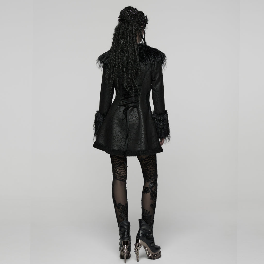 Step into the world of gothic fashion with this luxurious coat, blending timeless design with contemporary edge.