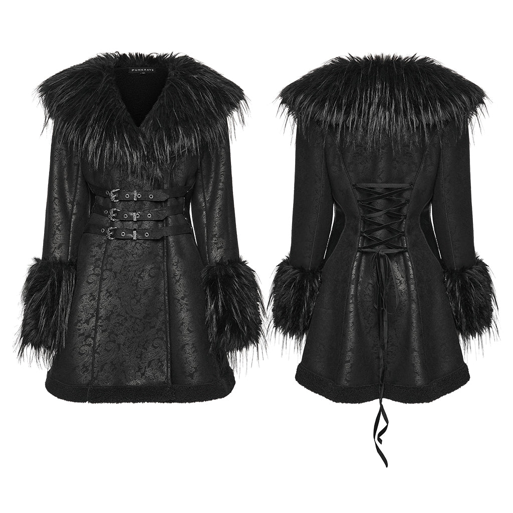 Introducing the Gothic Coat Faux Fur Trimmed Buckle Detail Long Sleeve, a striking embodiment of gothic elegance merged with a fierce modern edge. This coat is tailored for those who seek a bewitching presence, featuring luxurious faux fur trim and commanding buckle details that transform any ensemble. Whether you're wandering through moonlit streets or making a bold fashion statement, this coat ensures you're wrapped in an aura of mystery and allure.