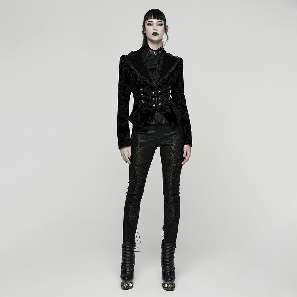 Introducing the Gothic Coat Velvet Brocade Lace Up Jacket, an exquisite blend of Victorian elegance and steampunk charm. This jacket is crafted for those who wish to make a strong stylistic statement, featuring intricate brocade patterns and a flattering lace-up design. Whether you're stepping into a themed event or elevating your day-to-day ensemble, this Gothic Coat is your definitive choice for a timeless, sophisticated look.