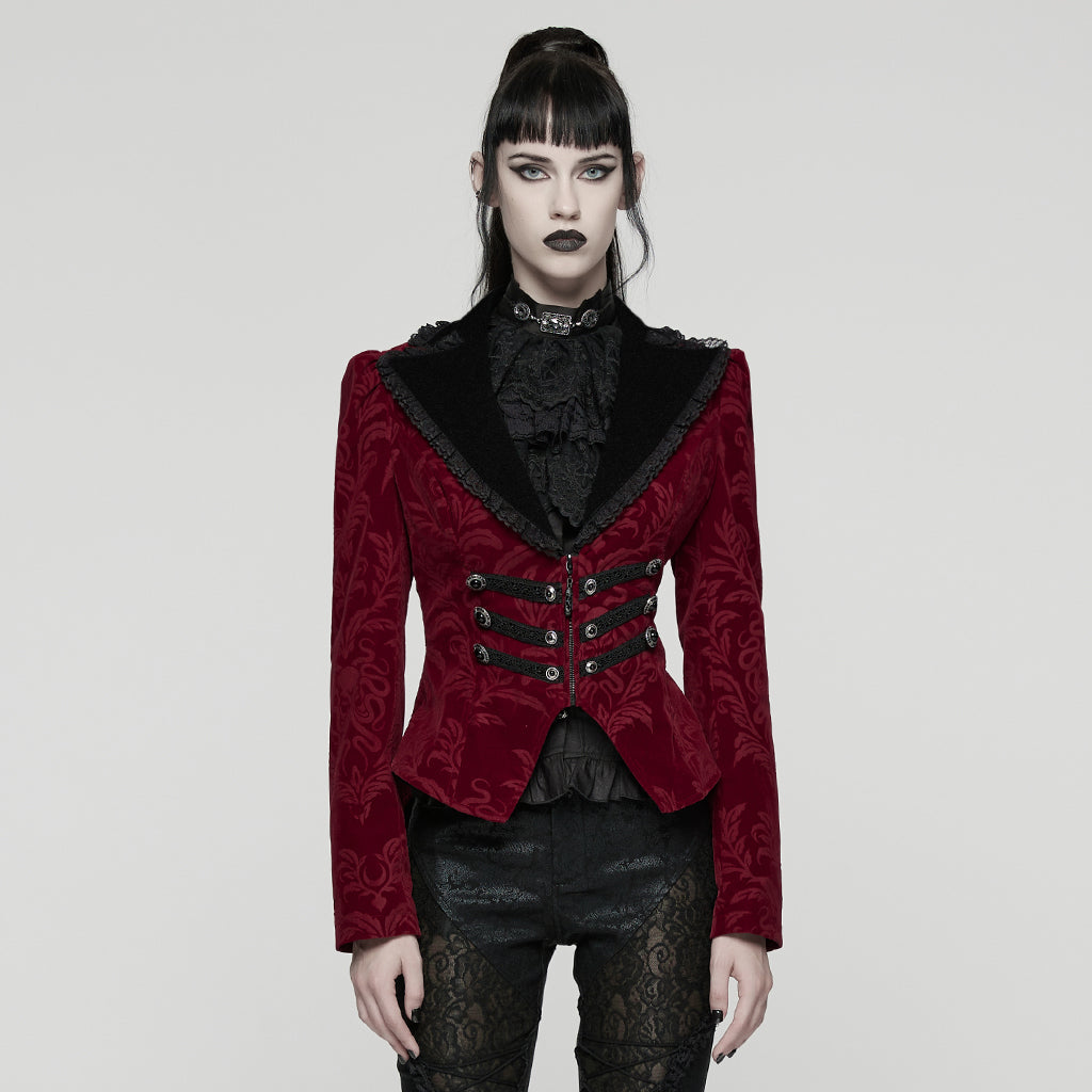 Step into the realm of classic gothic fashion with this striking jacket, marrying vintage elegance with modern steampunk elements.