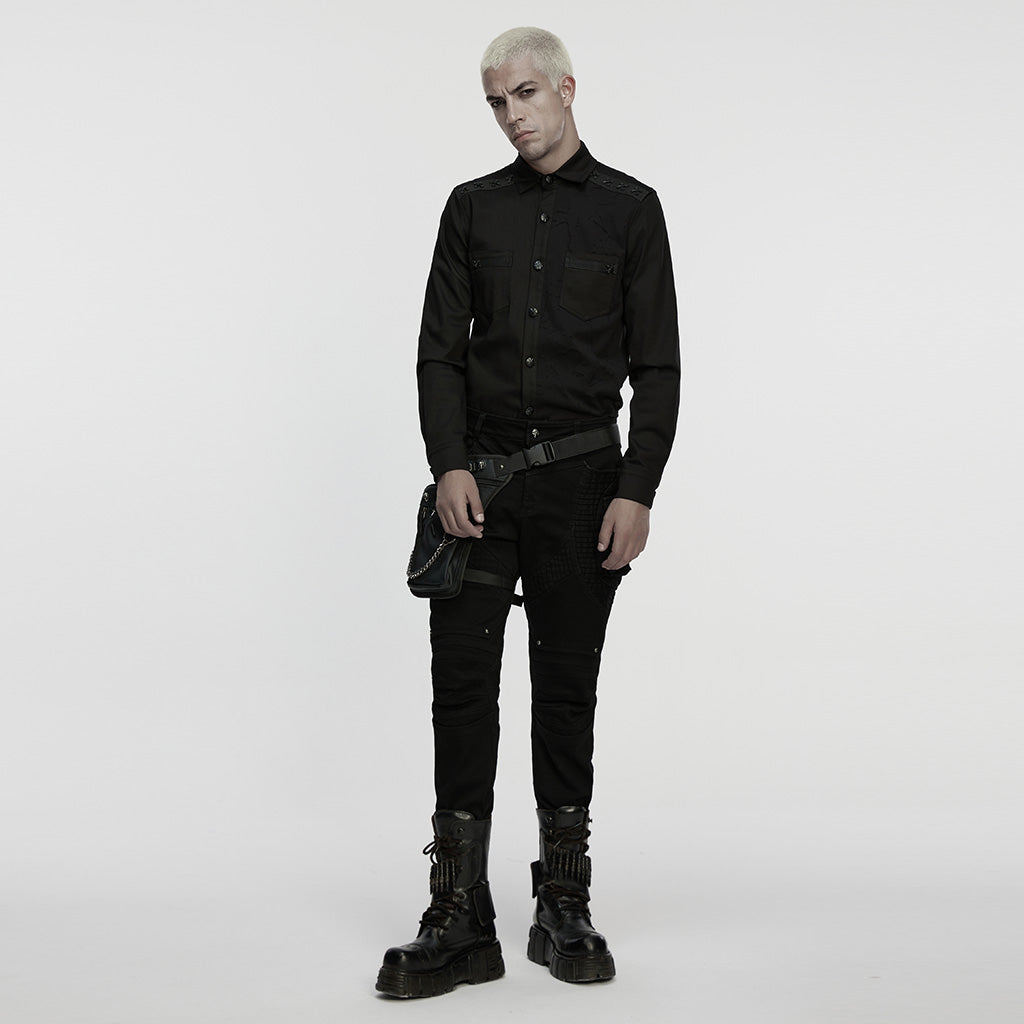 Introducing the Edgy Black Punk Shirts with Distressed and Stud Details, where classic punk meets a modern twist. This shirt is crafted for the bold, featuring distressed textures and studded accents that bring an unmistakable edge to any outfit. Stand out and express your individuality with this statement piece that seamlessly blends rebellious flair with contemporary fashion.