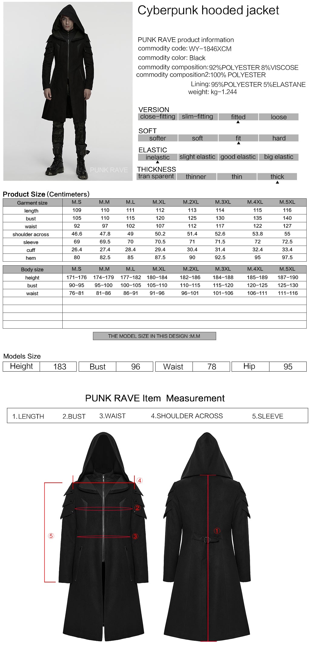 Fit and Feel: Designed with a close fit, this punk coat contours effortlessly to your form while offering a slight stretch for comfort. The high-quality blend of materials presents a sleek surface and a striking design that stays true to punk and gothic narratives.